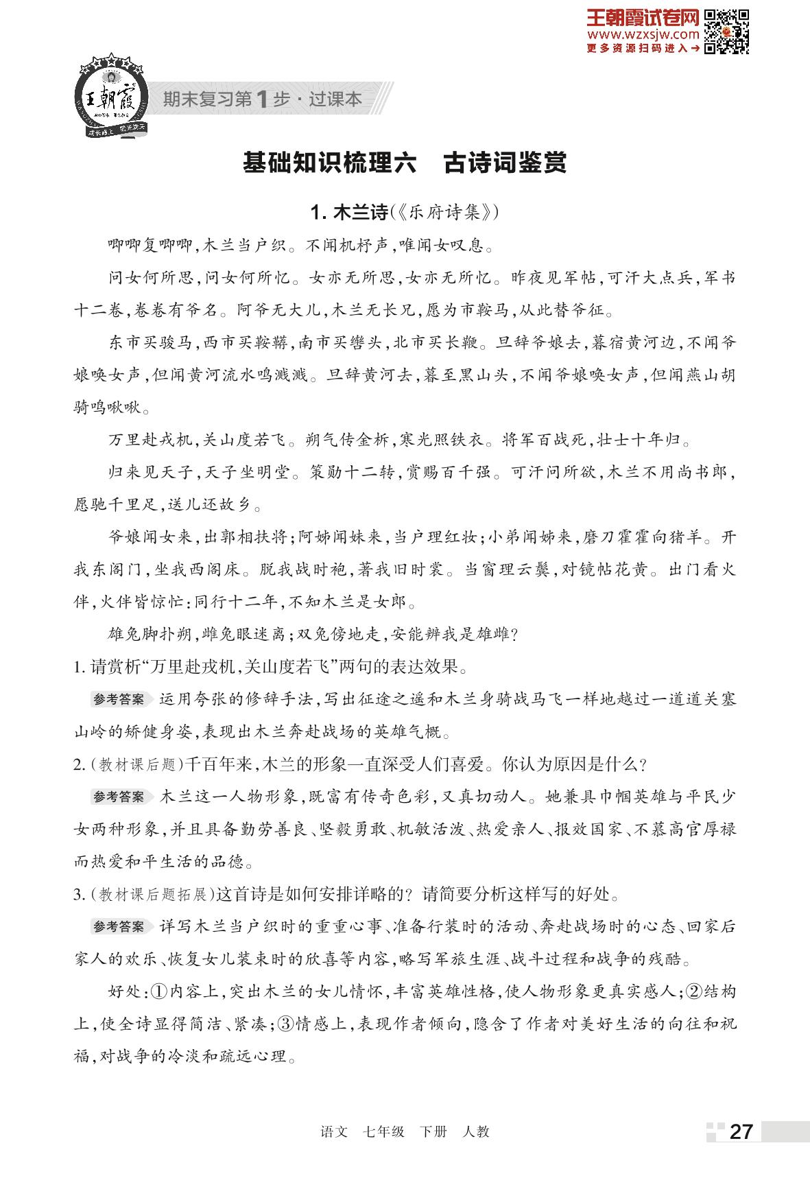 王朝霞期末过课本——基础知识梳理六 古诗词鉴赏七年级下册语文(人教版)_R230423153207541