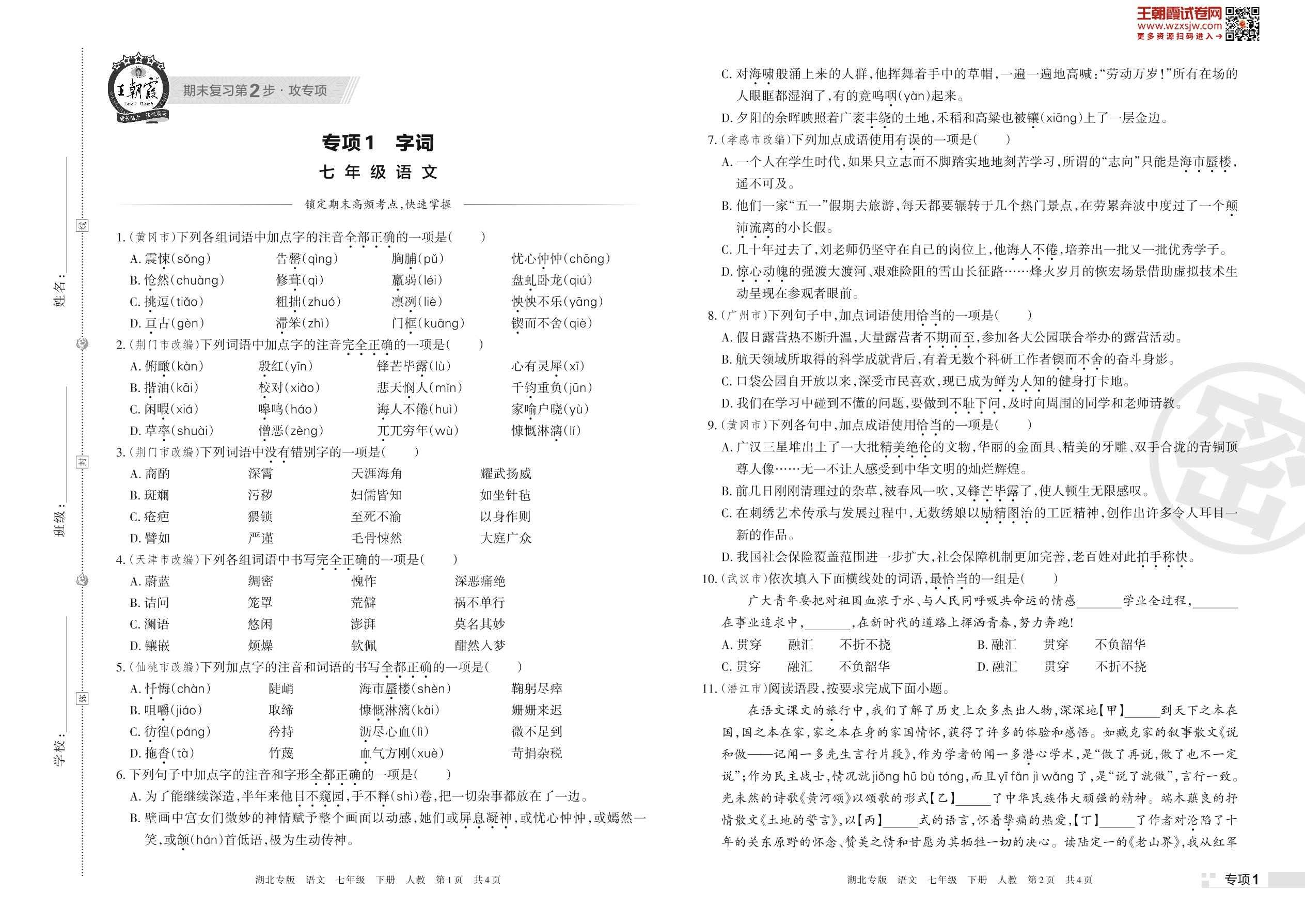 王朝霞期末专项卷——字词七年级下册语文(人教版)_R230423153208310【1】