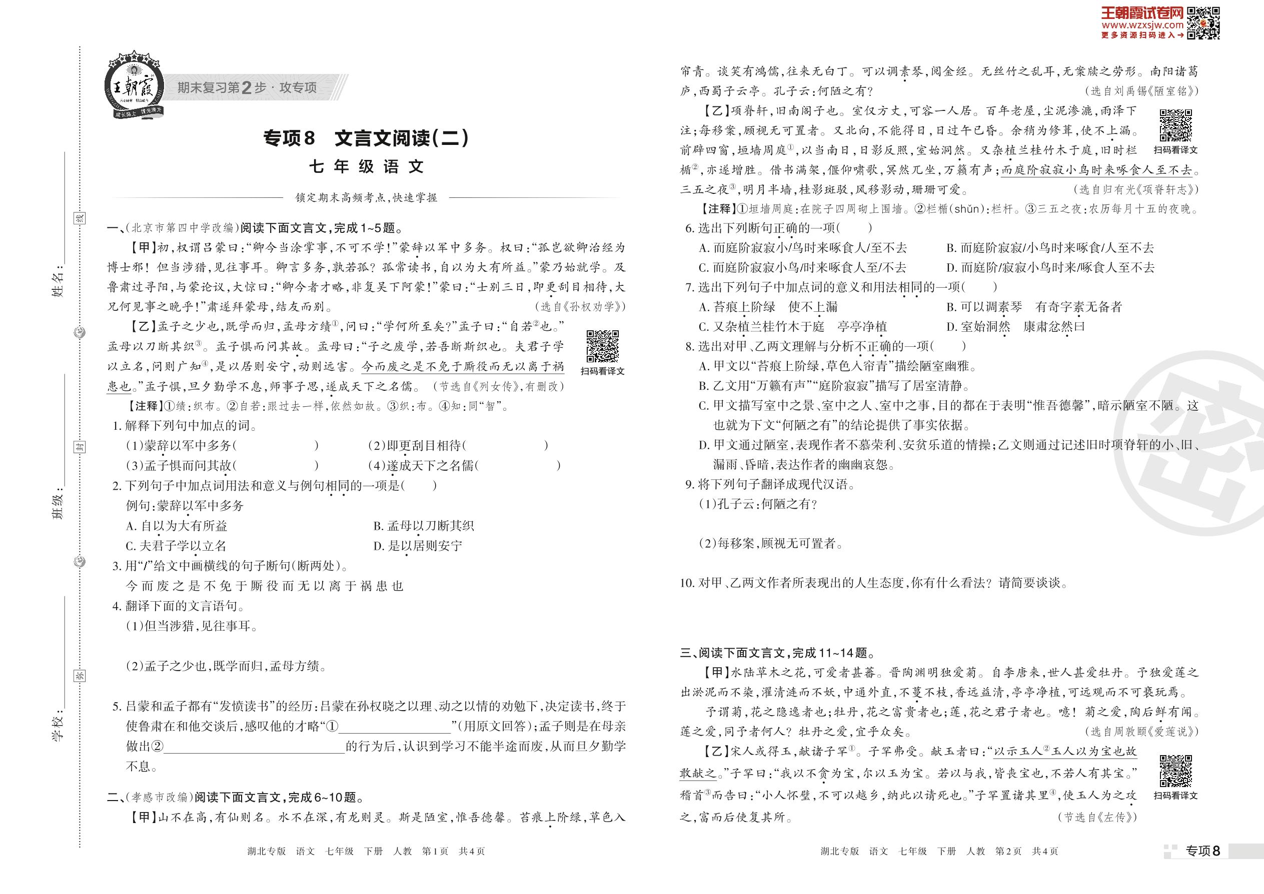 王朝霞期末专项卷——文言文阅读(二)七年级下册语文(人教版)_R230423153208983【8】