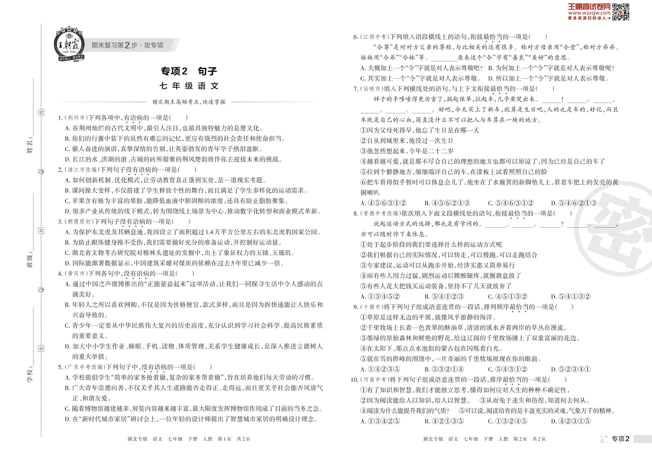 王朝霞期末专项卷——句子七年级下册语文(人教版)_R230423153208769【2】