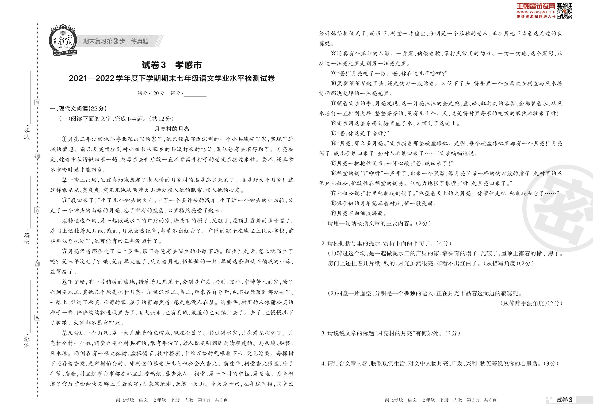 孝感市2021—2022学年度下学期期末七年级语文学业水平检测试卷(人教版)【3】