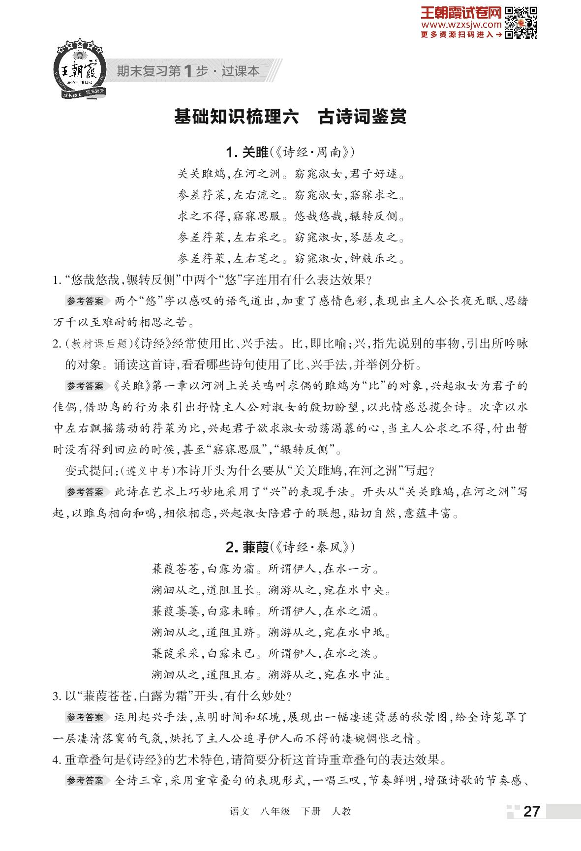 王朝霞期末过课本——基础知识梳理六 古诗词鉴赏八年级下册语文(人教版)_R230423153811247