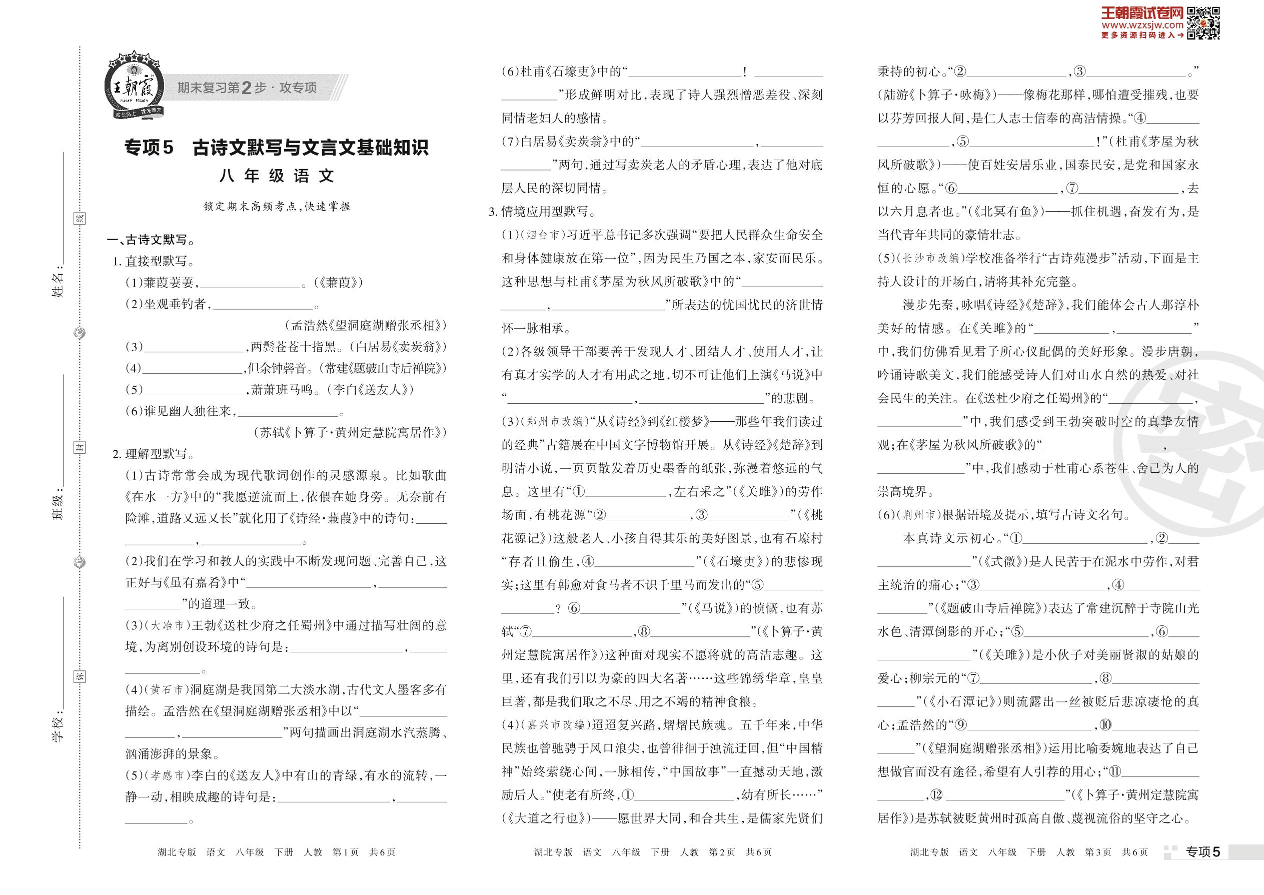 王朝霞期末专项卷——古诗文默写与文言文基础知识八年级下册语文(人教版)_R230423153812803【5】