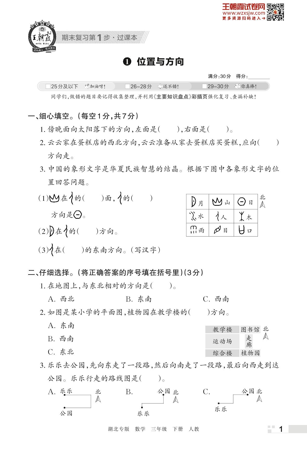 王朝霞期末过课本——1 位置与方向三年级下册数学(人教版)_R230423155732347