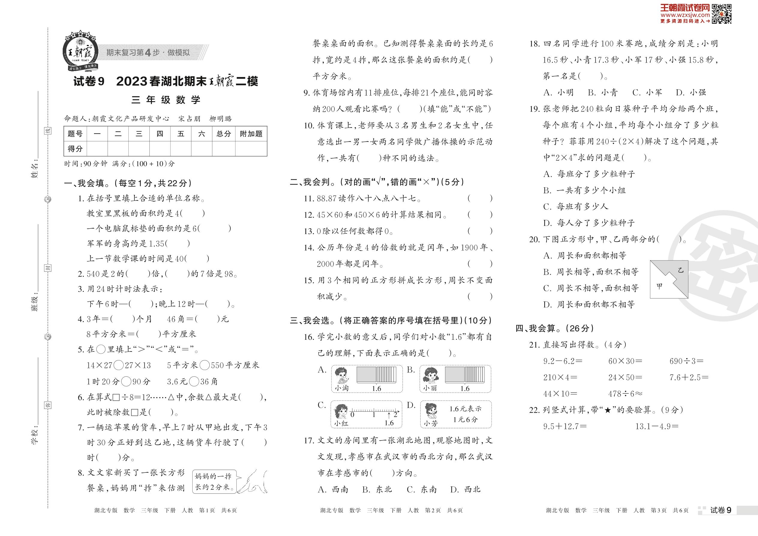 王朝霞期末模拟卷三年级下册数学(人教版)_R230423155734218【9】