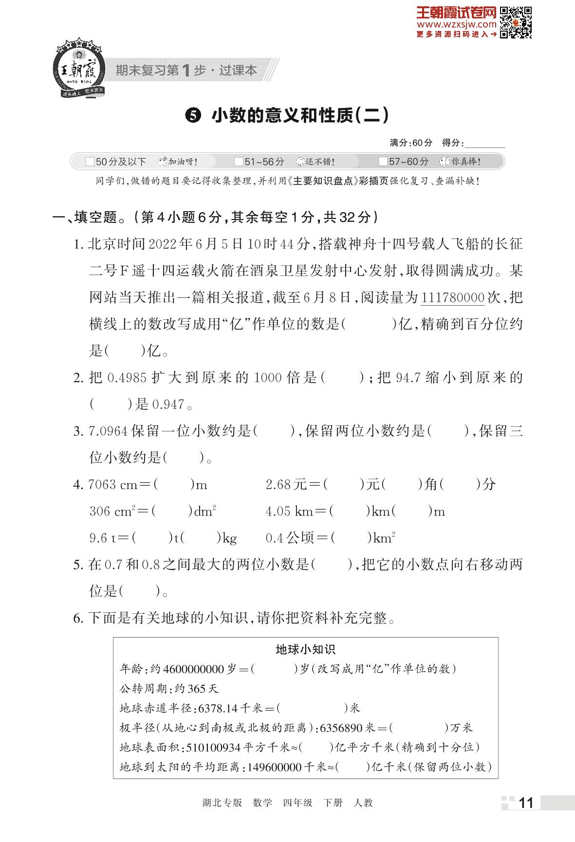 王朝霞期末过课本——5 小数的意义和性质(二)四年级下册数学(人教版)_R230423160248781