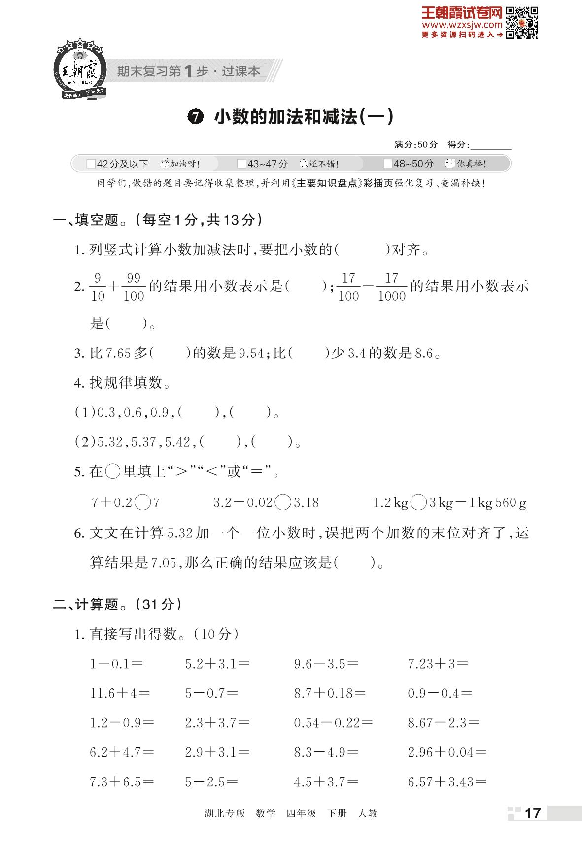 王朝霞期末过课本——7 小数的加法和减法(一)四年级下册数学(人教版)_R230423160248103