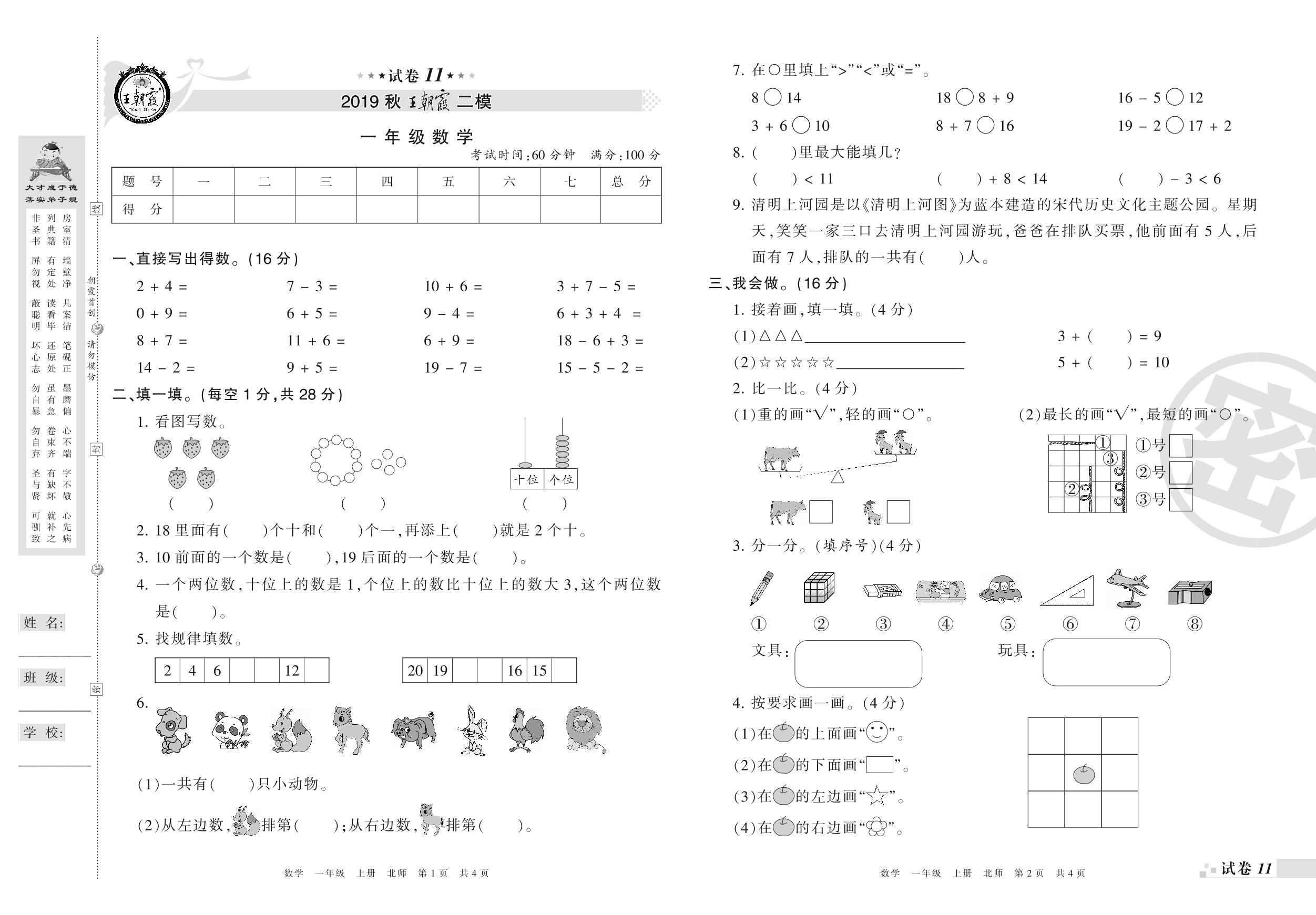 王朝霞期末模拟卷一年级上册数学(北师版)_R210802215721【11】