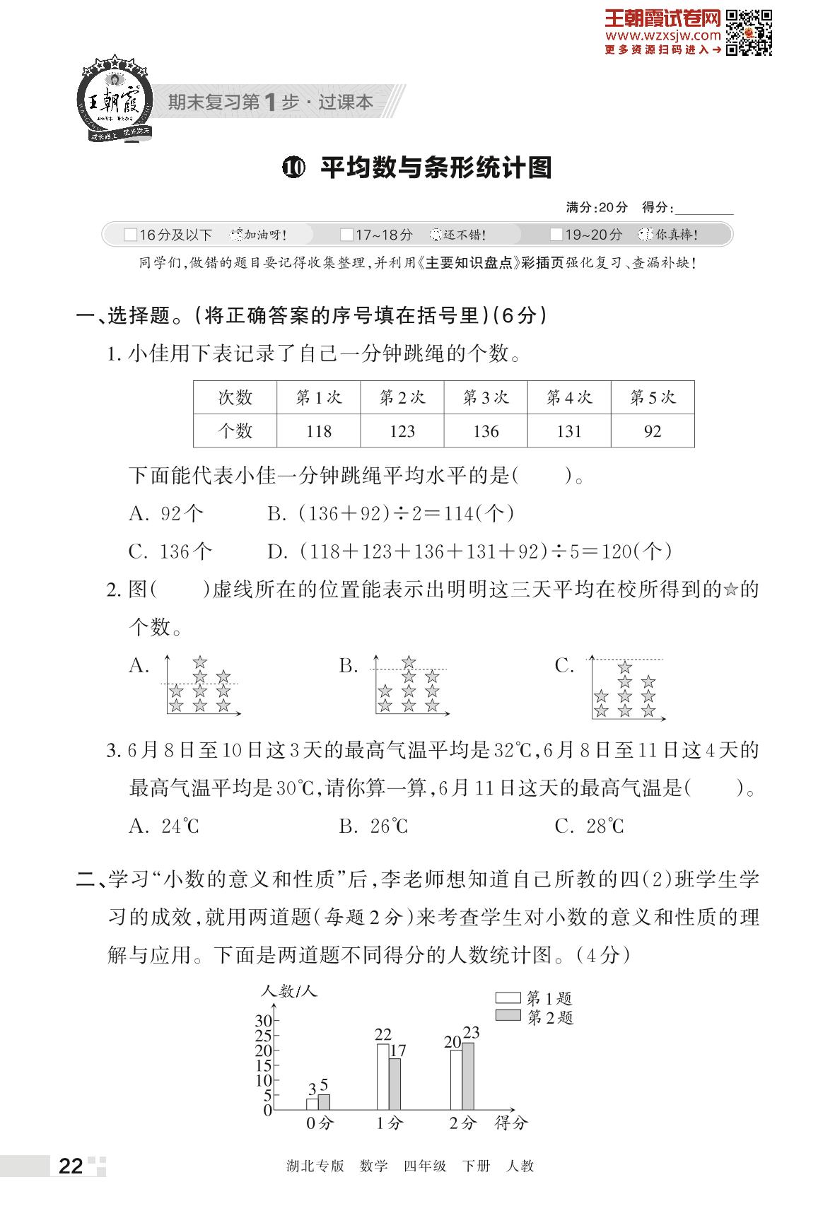 王朝霞期末过课本——10 平均数与条形统计图四年级下册数学(人教版)_R230423160248929