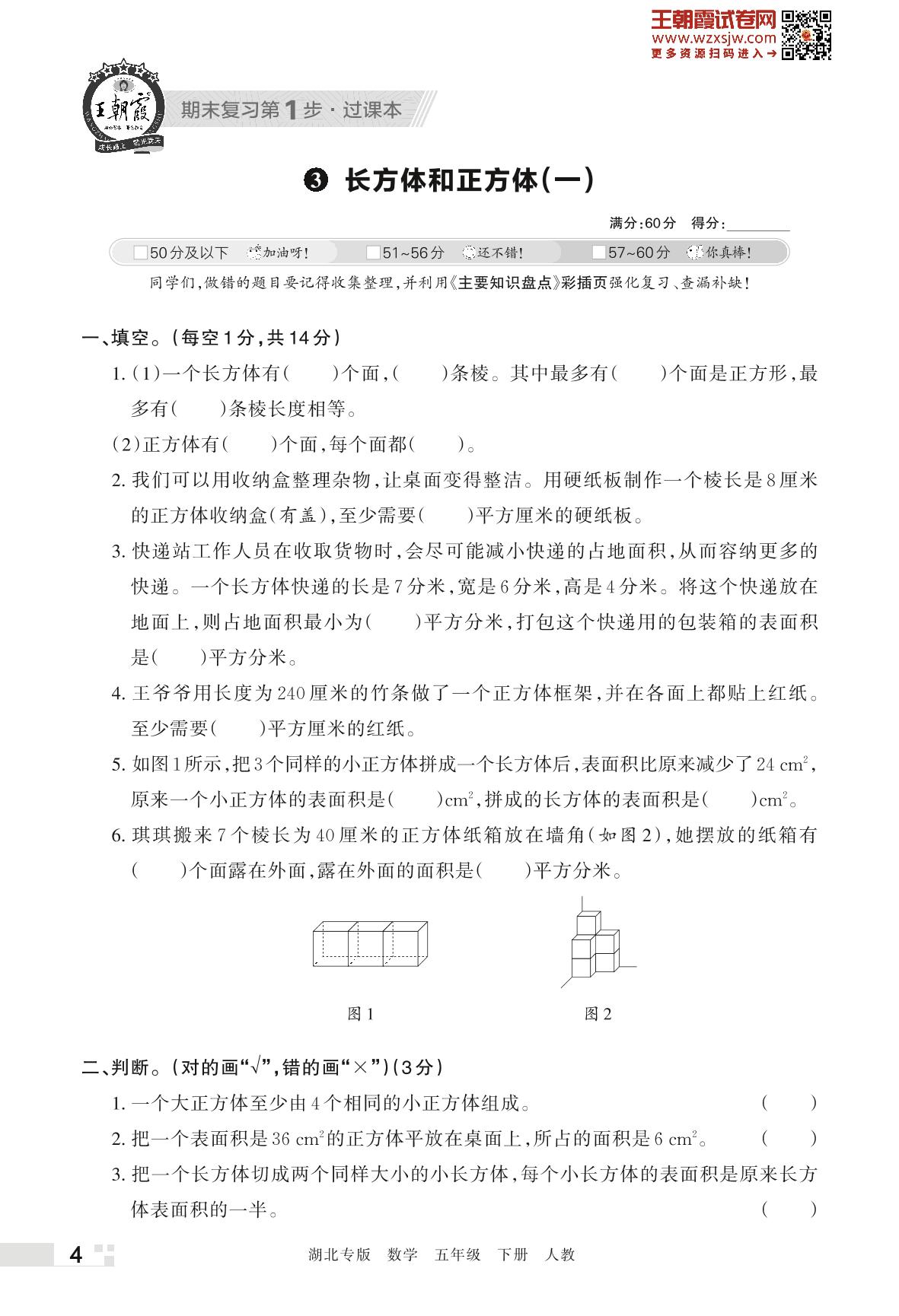 王朝霞期末过课本——3 长方体和正方体(一)五年级下册数学(人教版)_R230423160922879