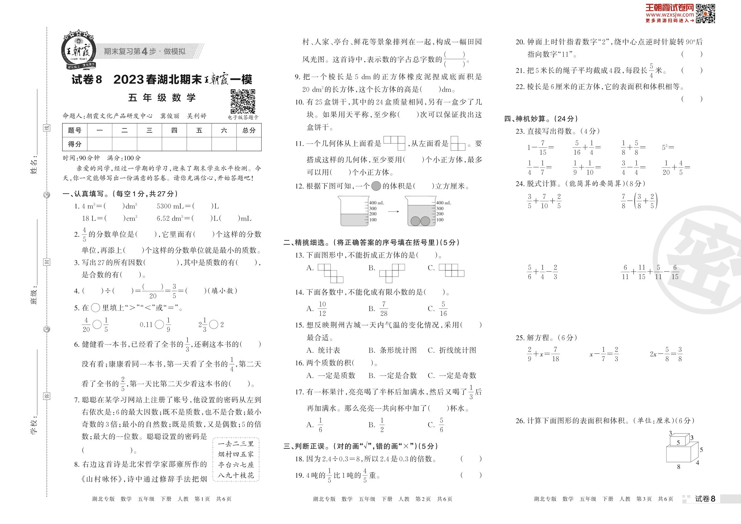 王朝霞期末模拟卷五年级下册数学(人教版)_R230423160925841【8】