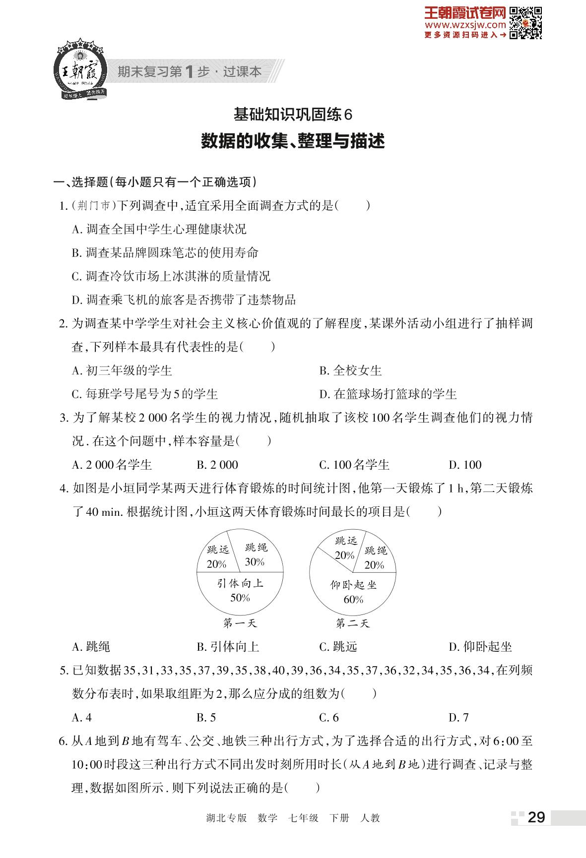 王朝霞期末过课本——基础知识巩固练6 数据的收集、整理与描述七年级下册数学(人教版)_R230423162937825