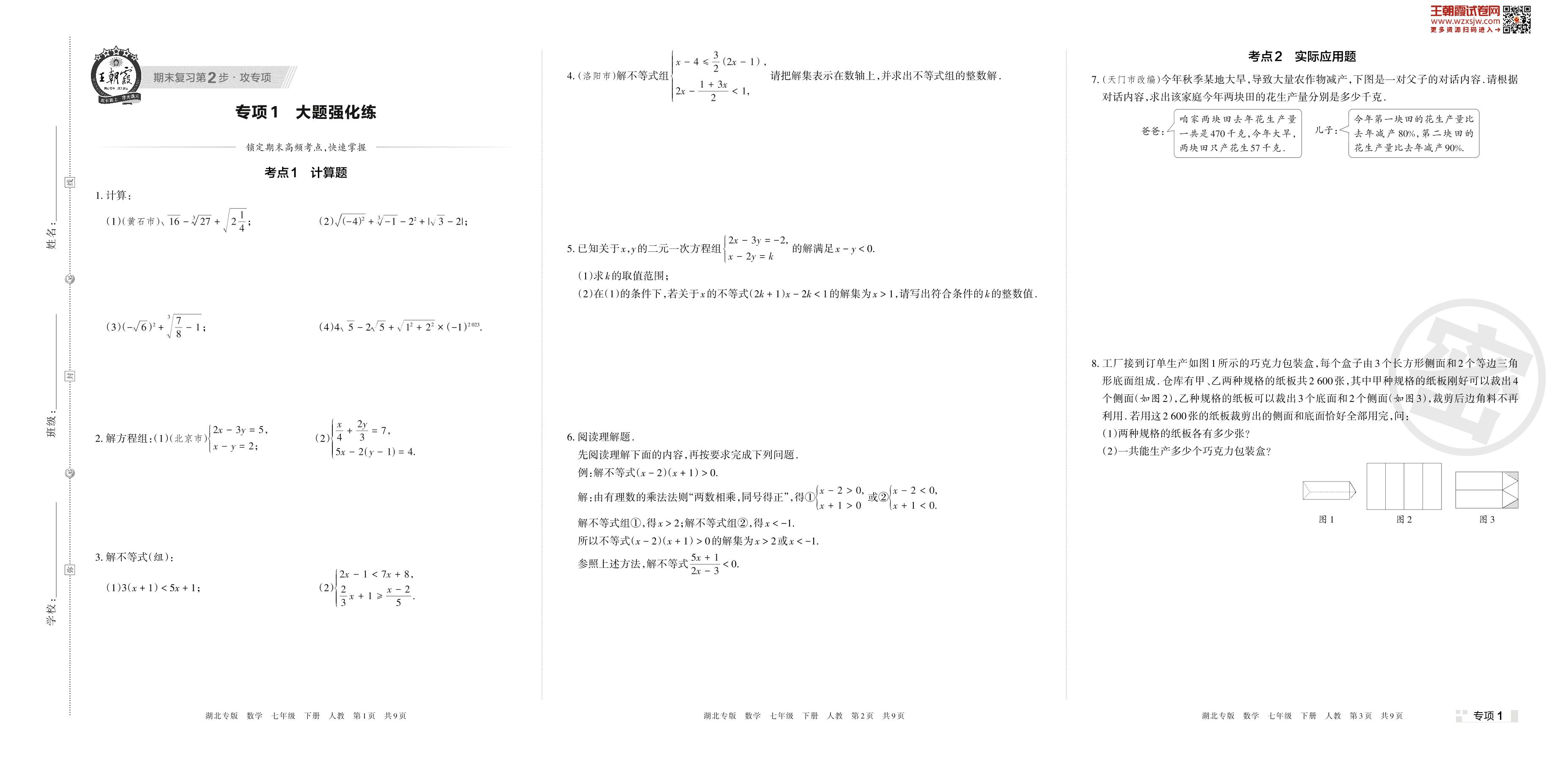 王朝霞期末专项卷——大题强化练七年级下册数学(人教版)_R230423162938252【1】