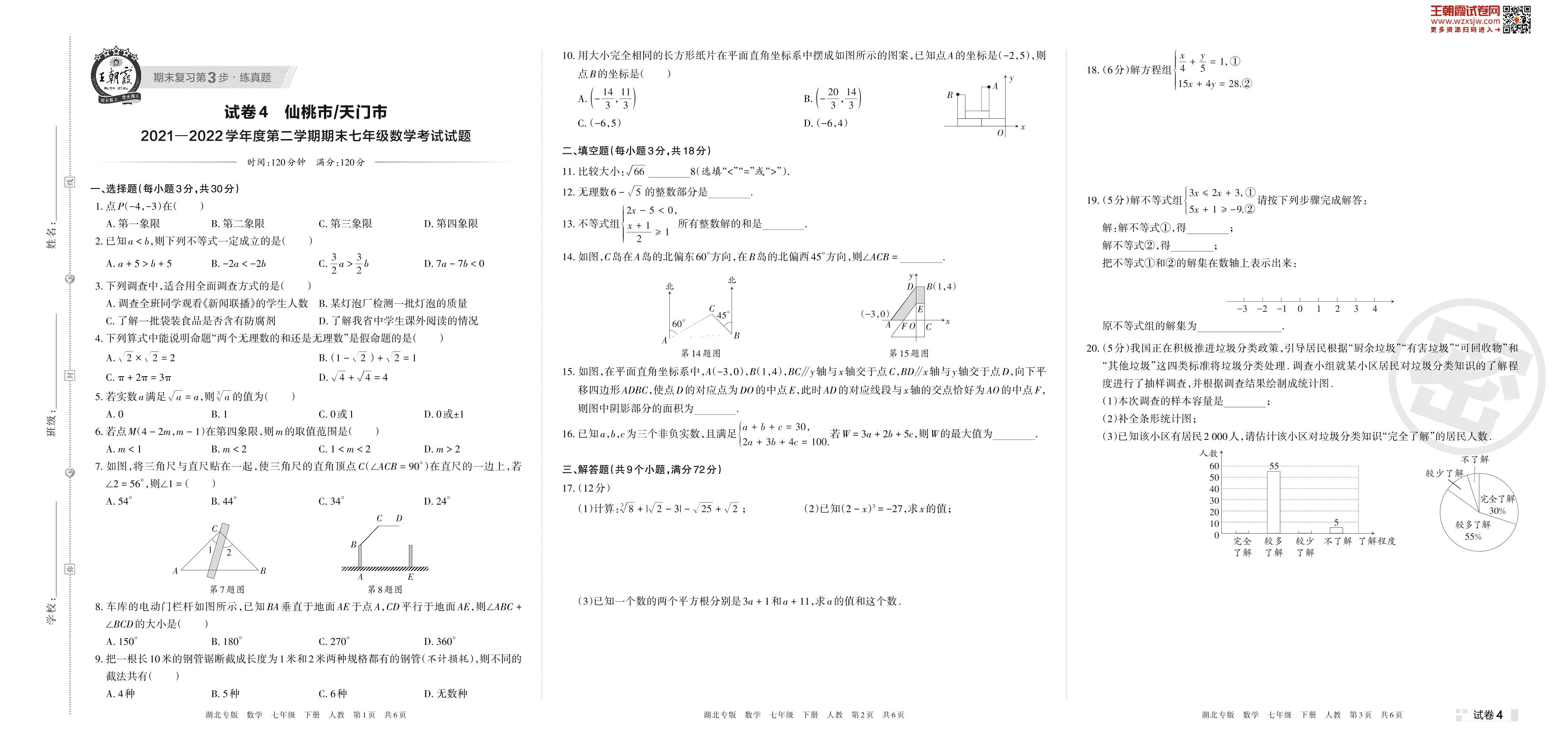 仙桃市、天门市2021—2022学年度第二学期期末七年级数学考试试题(人教版)【4】