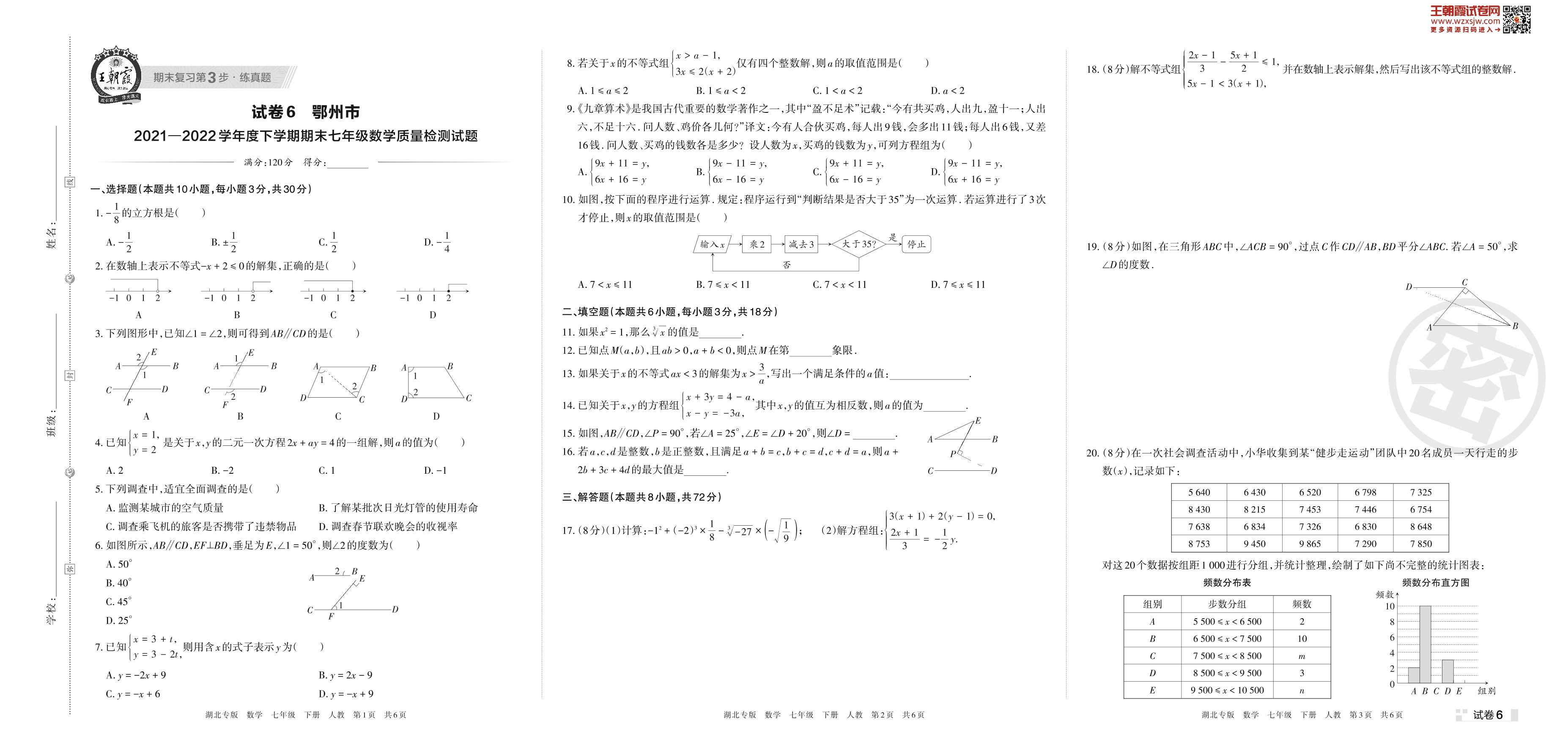 鄂州市2021—2022学年度下学期期末七年级数学质量检测试题(人教版)【6】