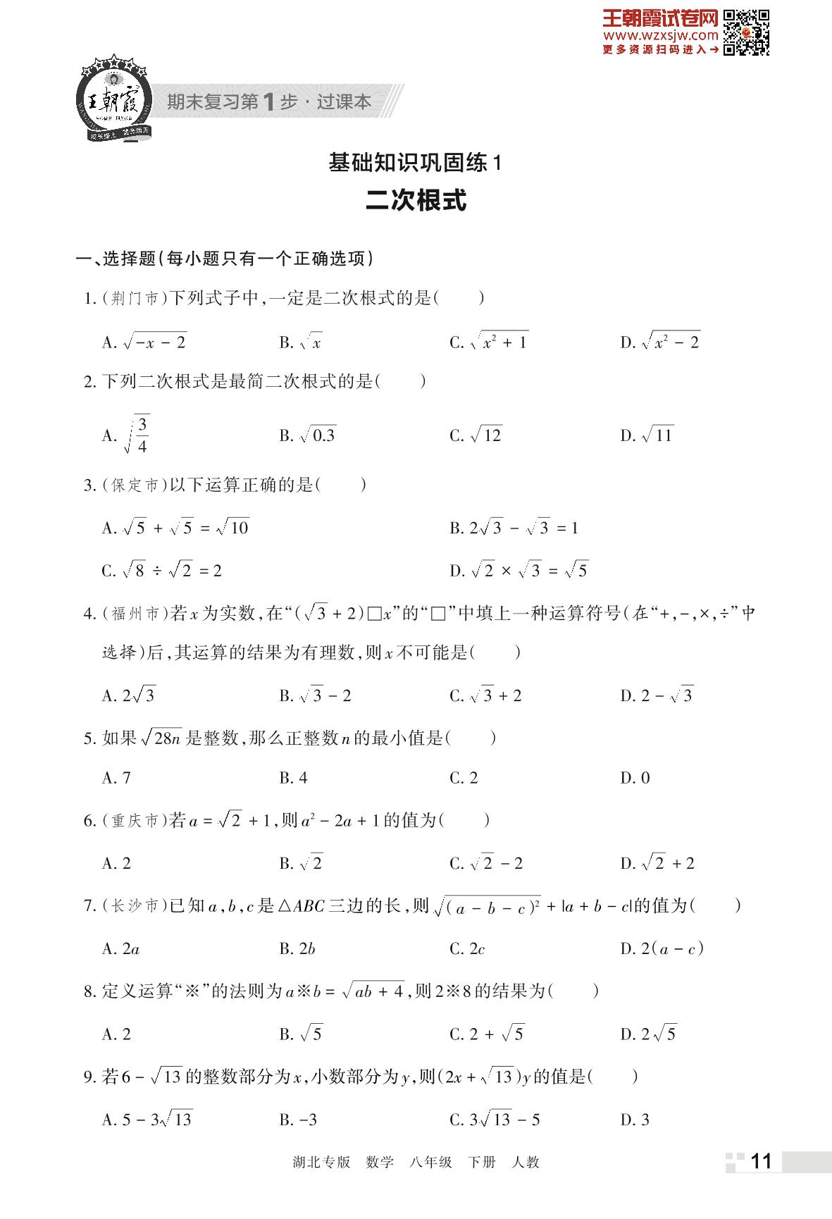 王朝霞期末过课本——基础知识巩固练1 二次根式八年级下册数学(人教版)