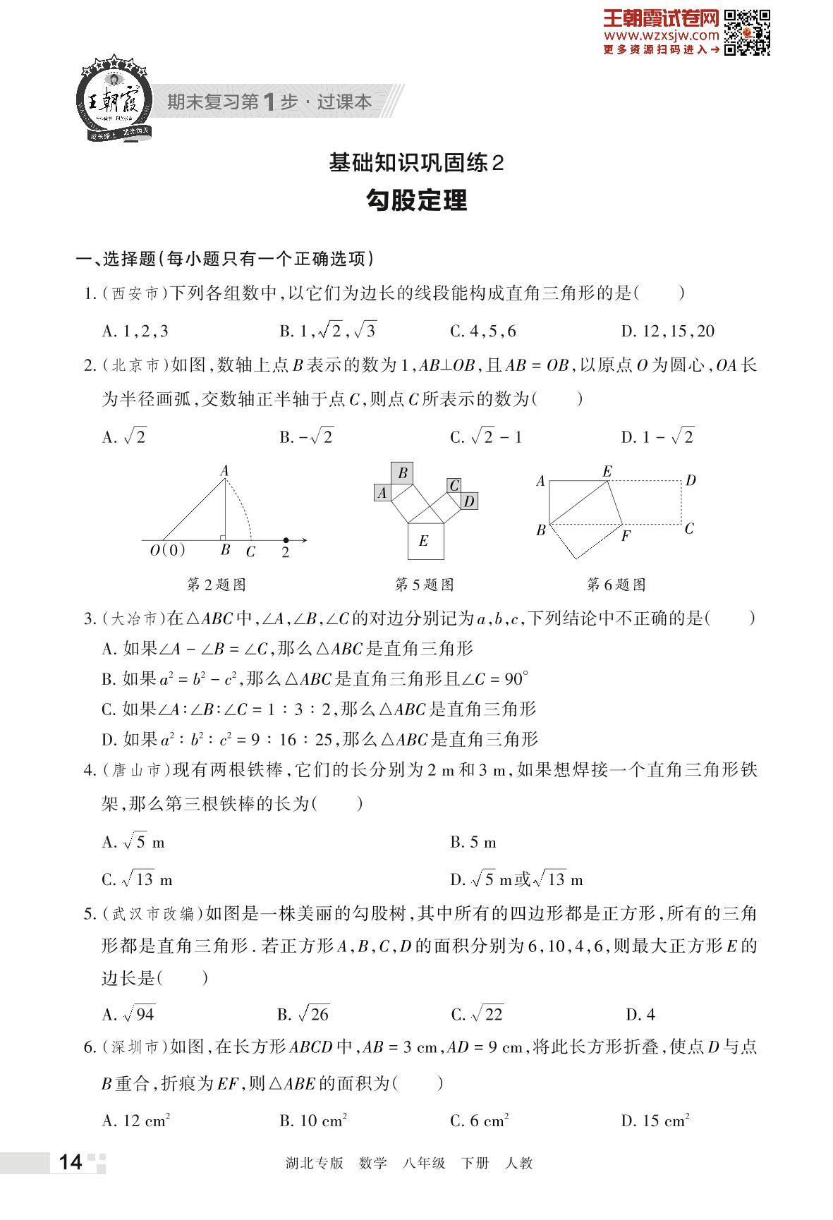 王朝霞期末过课本——基础知识巩固练2 勾股定理八年级下册数学(人教版)