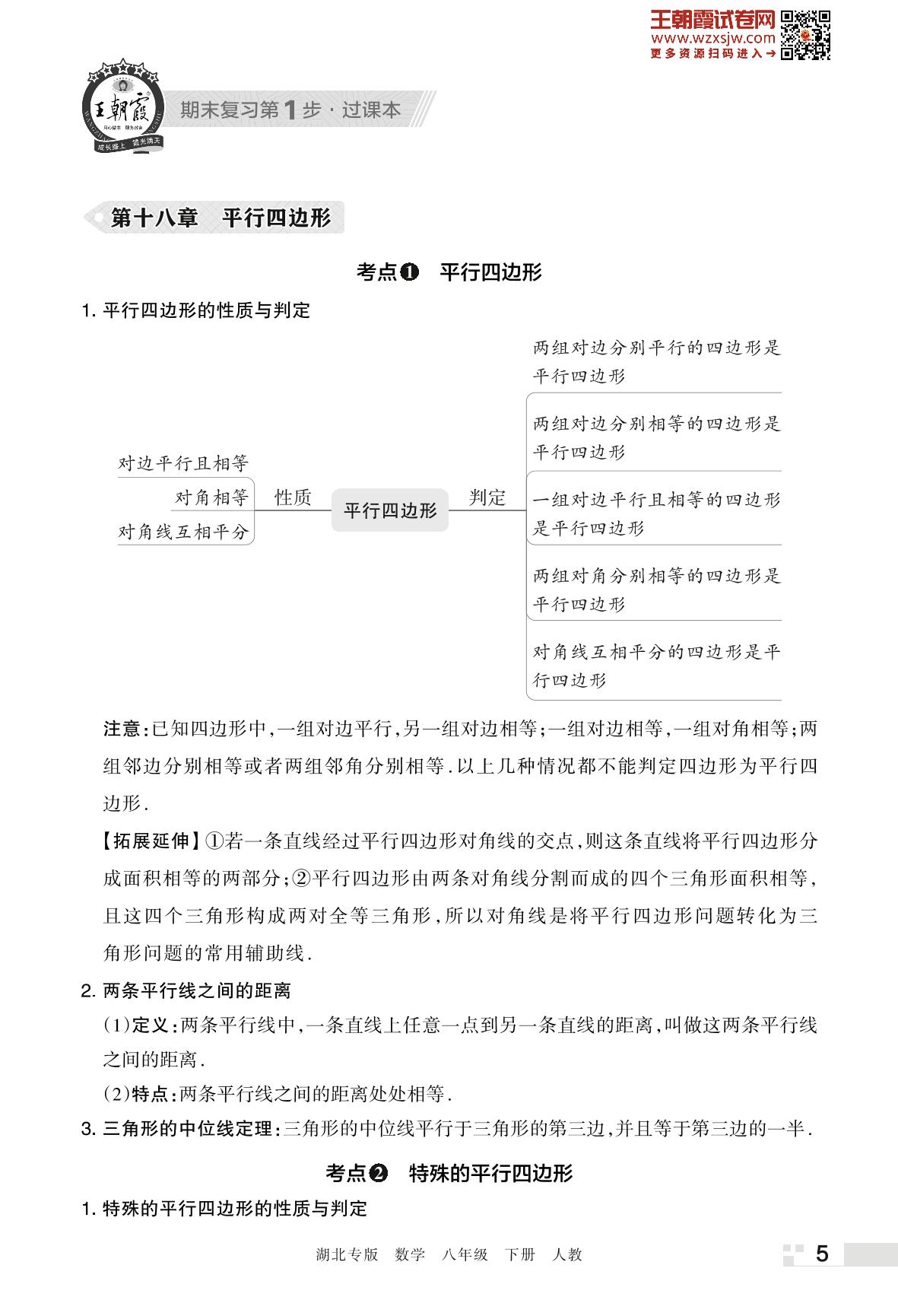 王朝霞期末知识梳理——第十八章 平行四边形八年级下册数学(人教版)