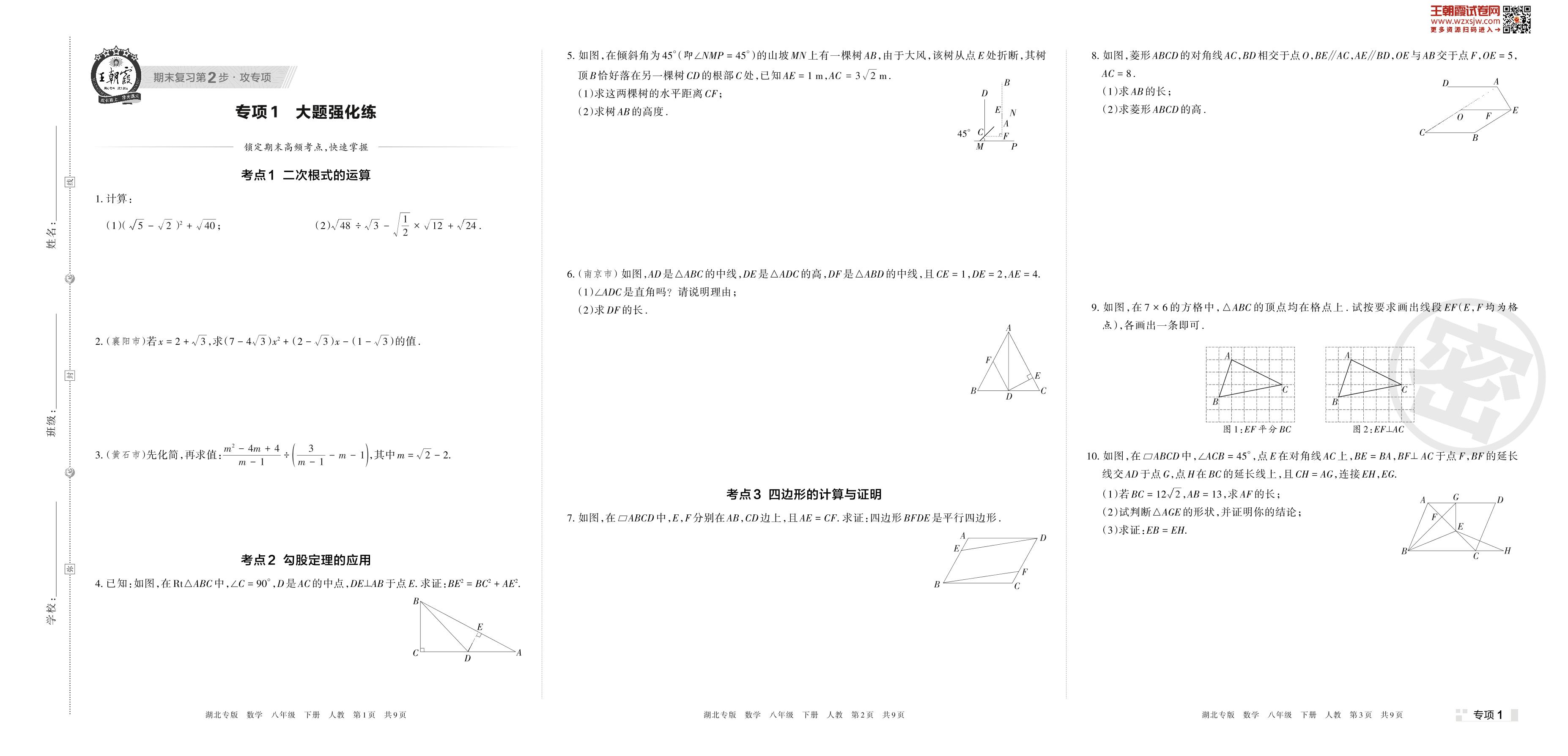 王朝霞期末专项卷——大题强化练八年级下册数学(人教版)_R230423163446661【1】