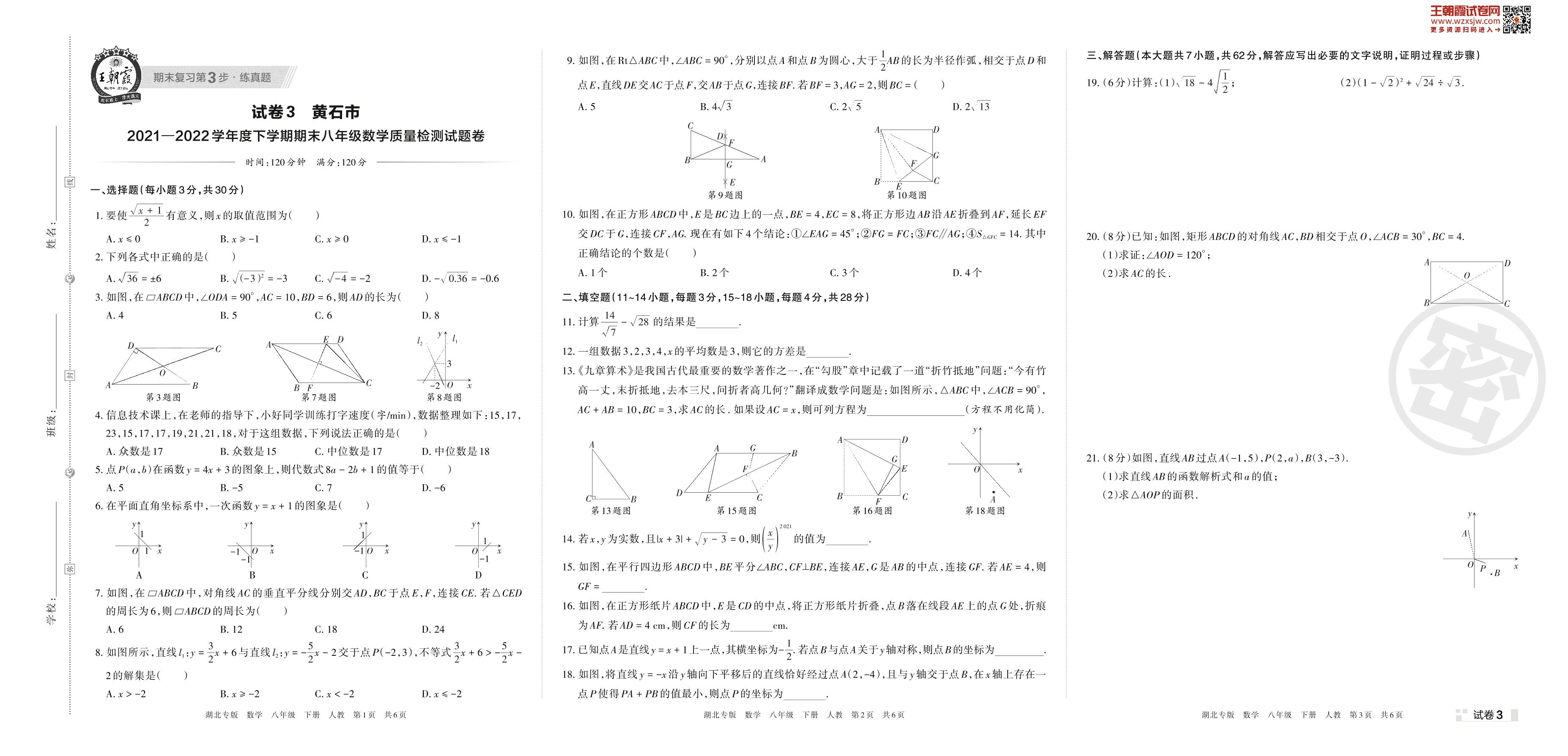 黄石市2021—2022学年度下学期期末八年级数学质量检测试题卷(人教版)【3】
