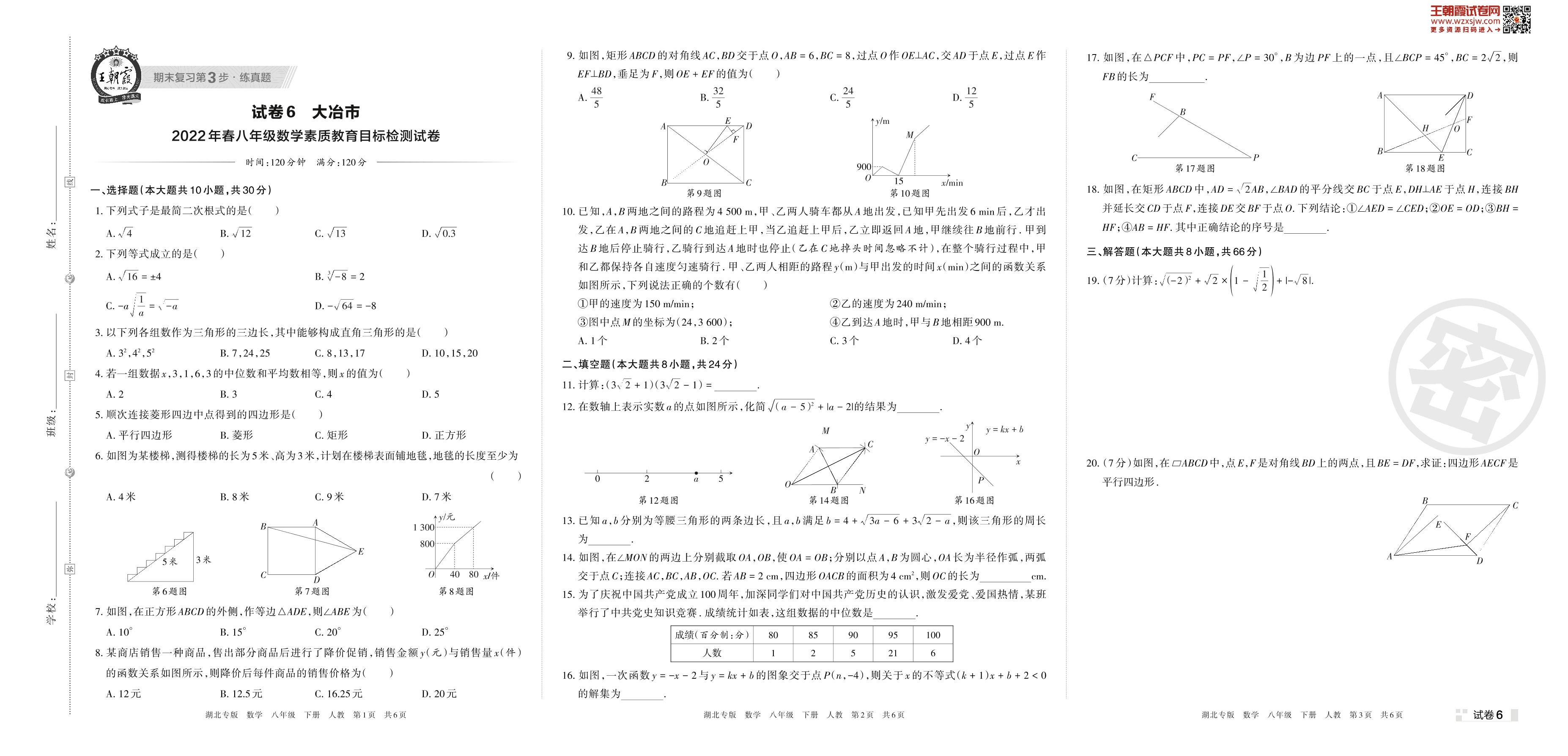 八年级数学人教版下册期末卷