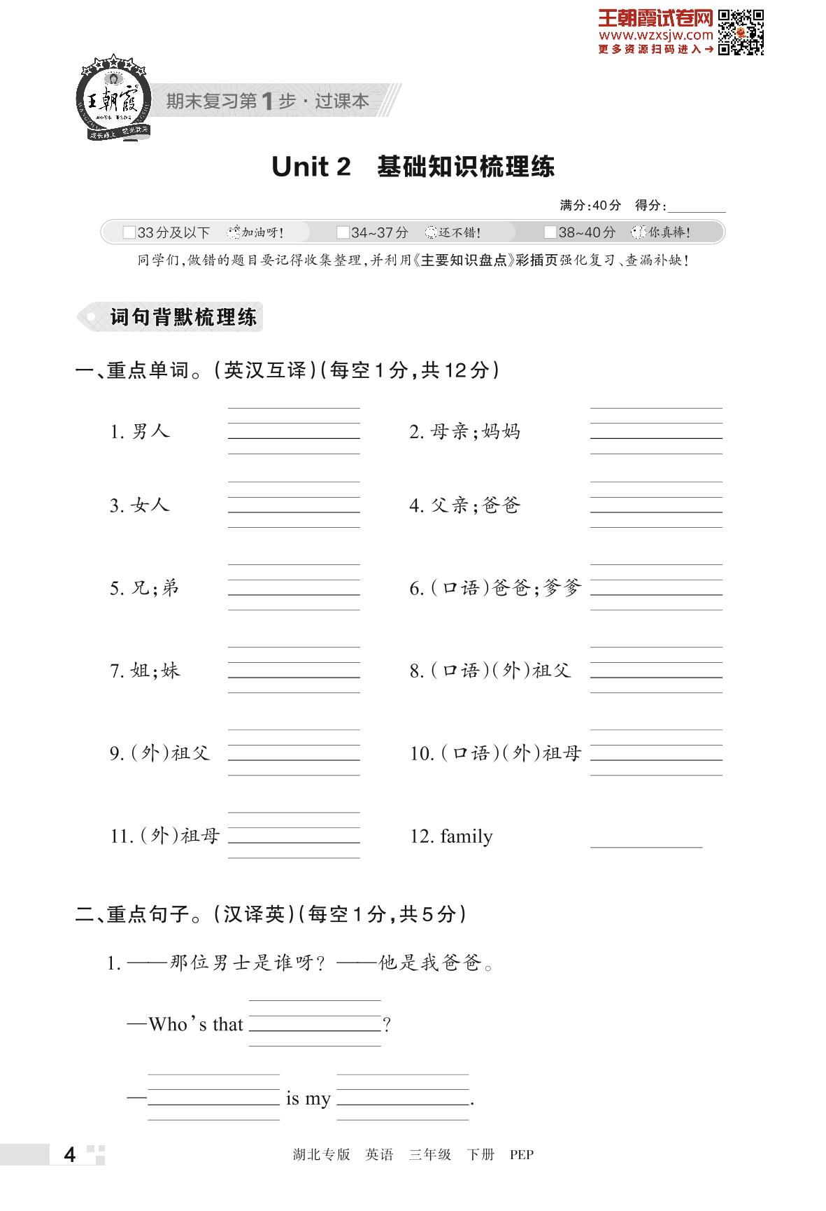 王朝霞期末过课本——Unit 2 基础知识梳理练三年级下册英语(PEP版)_R230423171719788