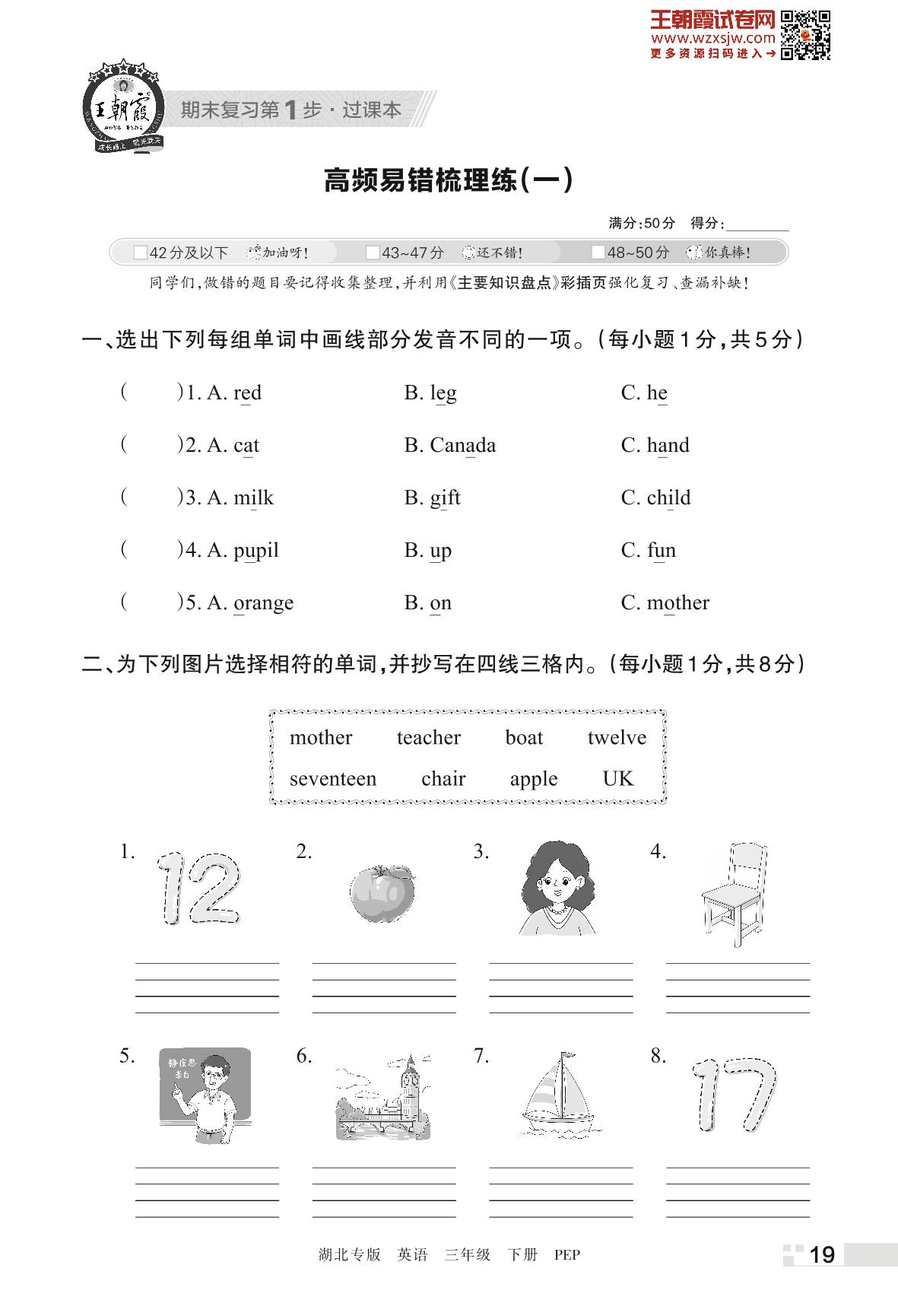王朝霞期末过课本——高频易错梳理练(一)三年级下册英语(PEP版)_R230423171720528