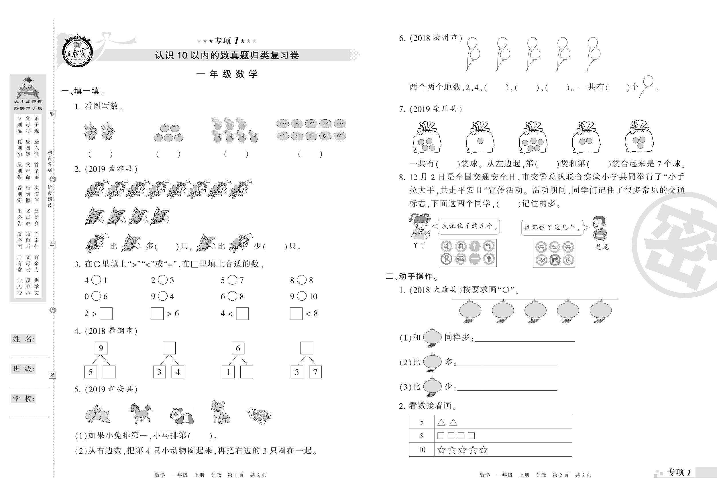 王朝霞期末专项卷——认识10以内的数、10以内的加法和减法真题归类复习一年级上册数学(苏教版)_R210802215818【0】
