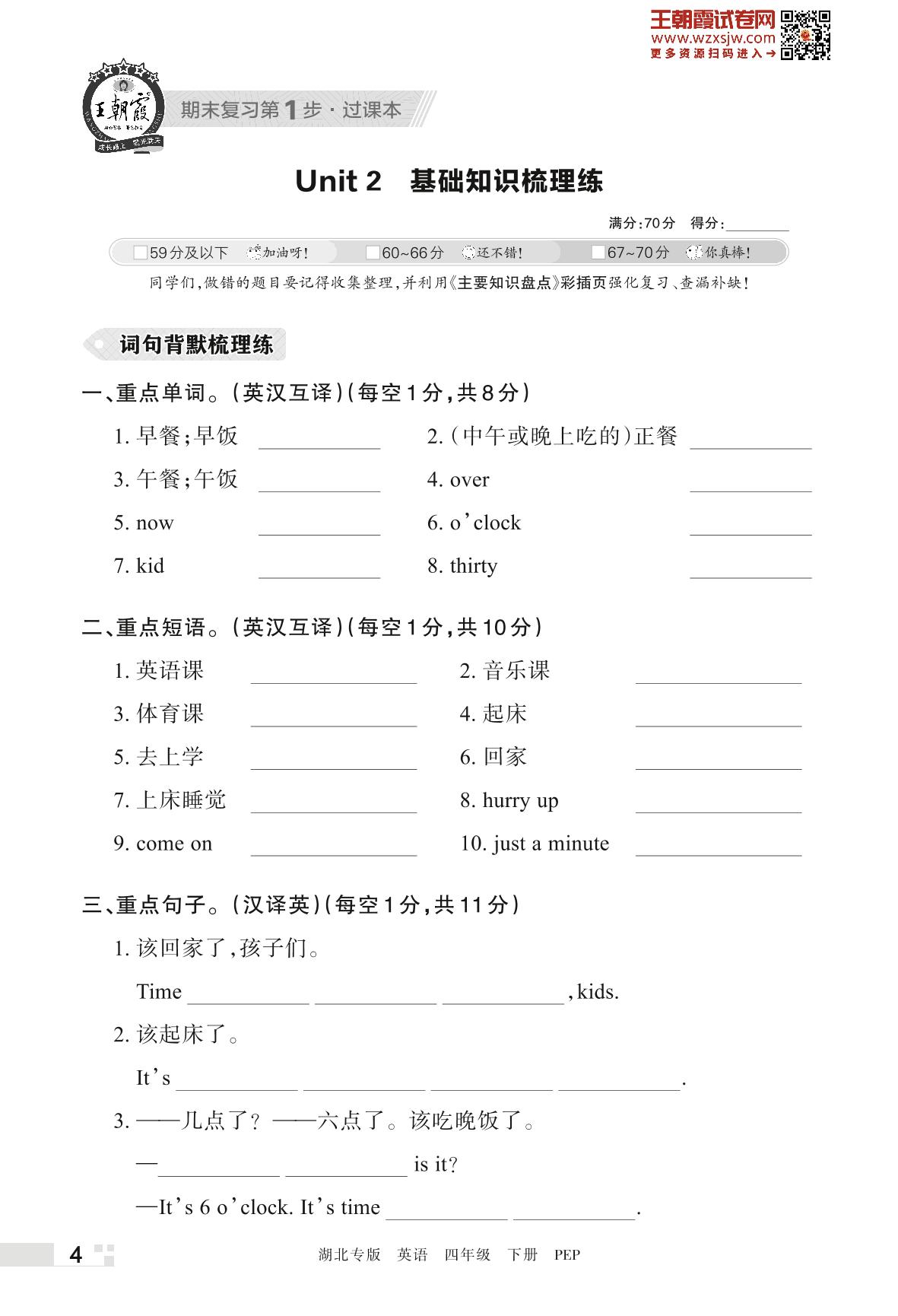 王朝霞期末过课本——Unit 2 基础知识梳理练四年级下册英语(PEP版)_R230423172238670