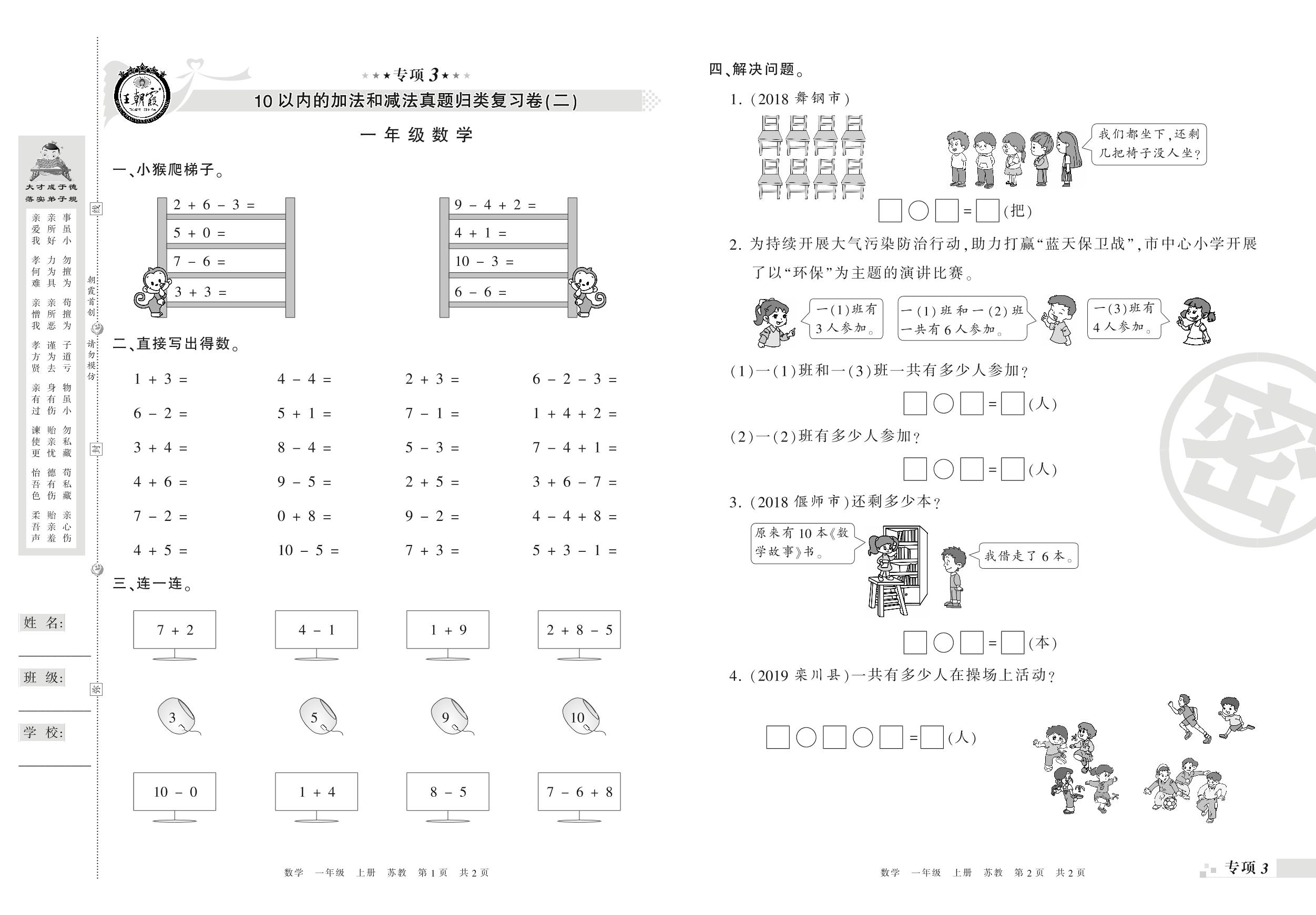 一年级数学苏教版上册专项卷