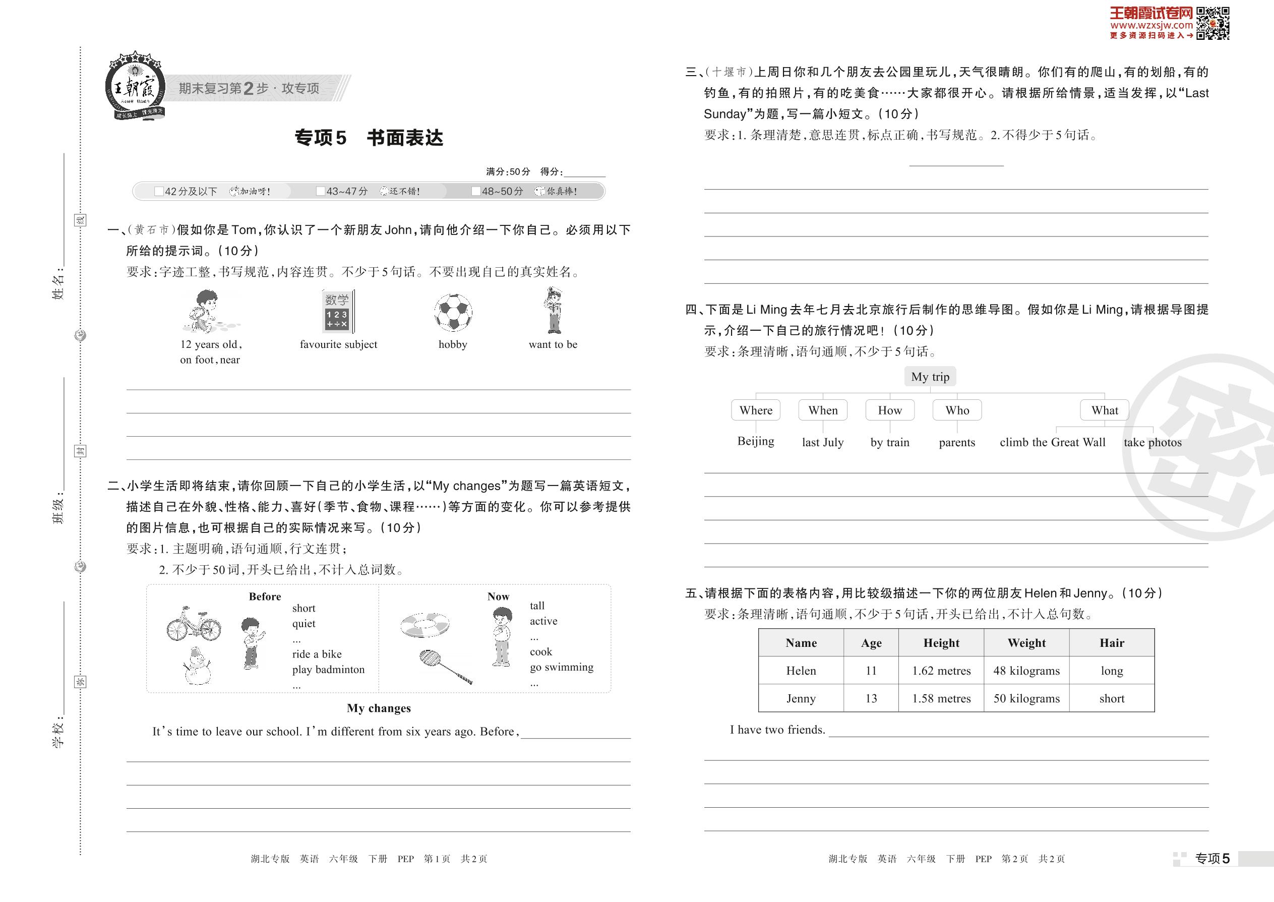 王朝霞期末专项卷——书面表达六年级下册英语(PEP版)_R230423172751014【5】
