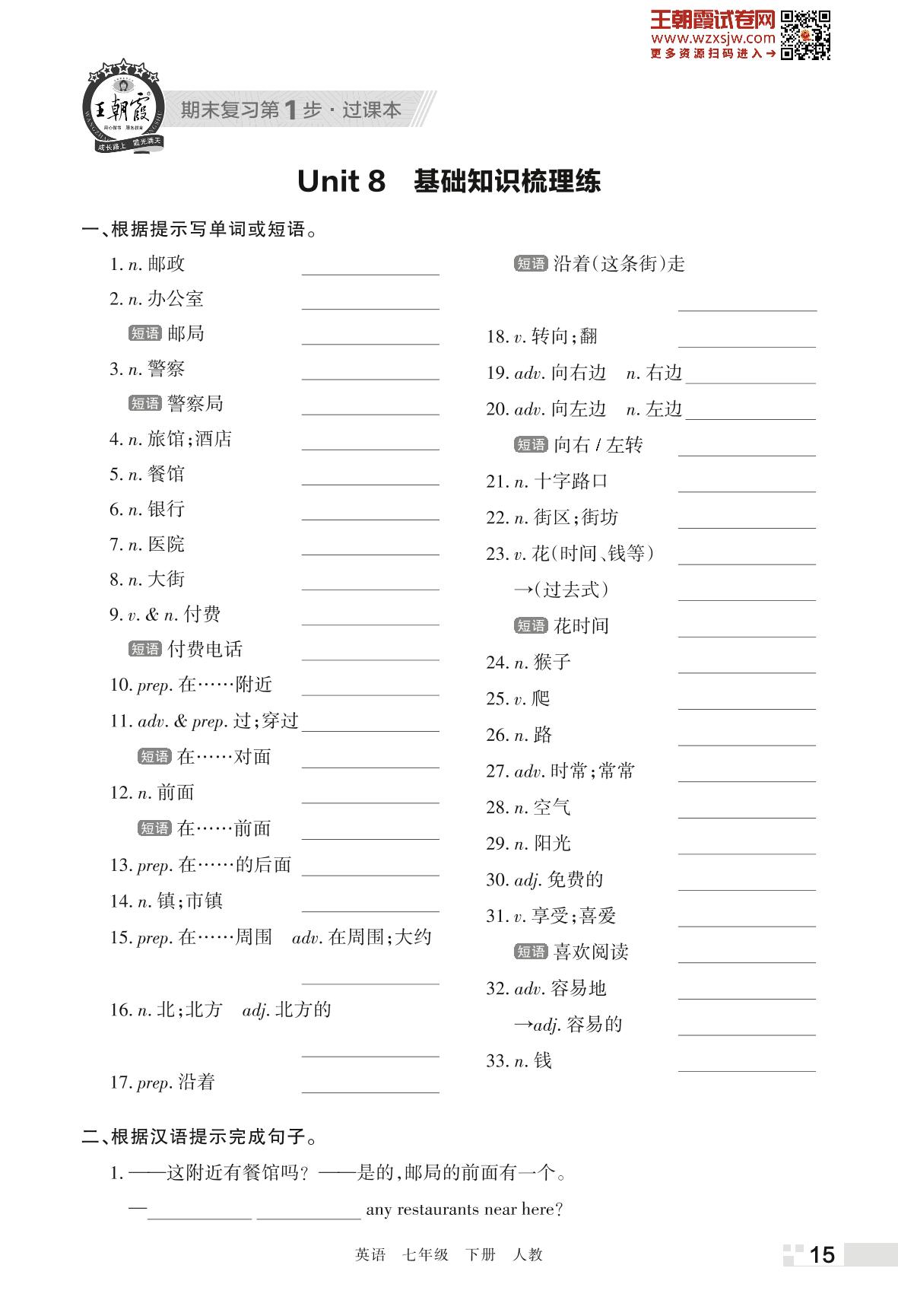 王朝霞期末过课本——Unit 8 基础知识梳理练七年级下册英语(人教版)_R230423173510591