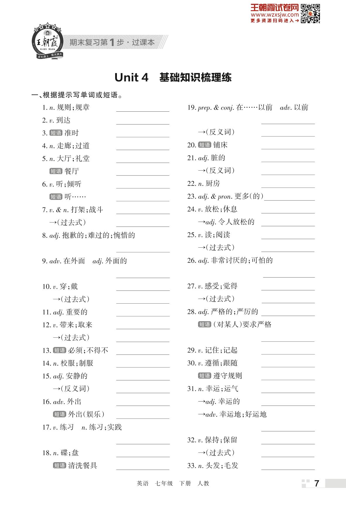 王朝霞期末过课本——Unit 4 基础知识梳理练七年级下册英语(人教版)_R230423173510464