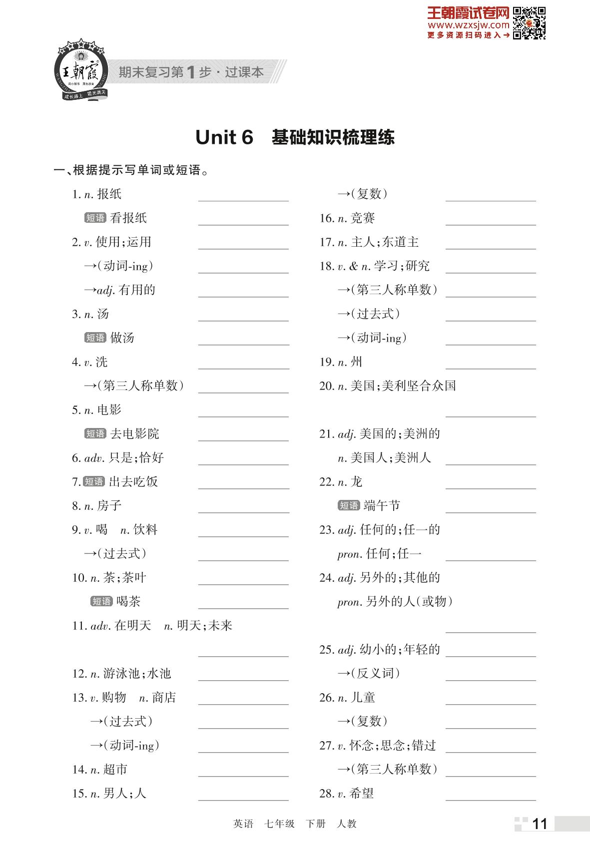 王朝霞期末过课本——Unit 6 基础知识梳理练七年级下册英语(人教版)_R230423173510336