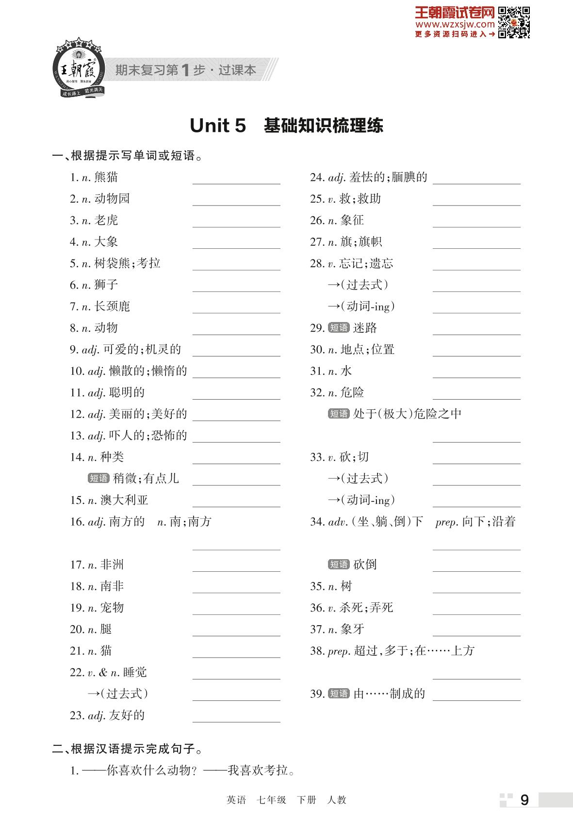 王朝霞期末过课本——Unit 5 基础知识梳理练七年级下册英语(人教版)_R230423173511240