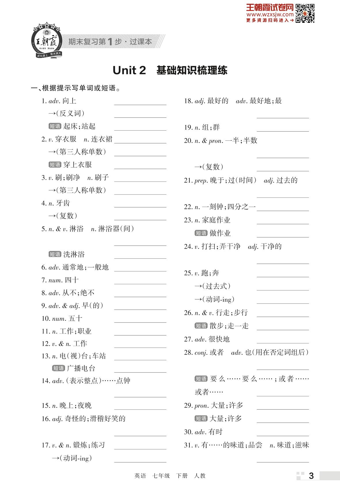王朝霞期末过课本——Unit 2 基础知识梳理练七年级下册英语(人教版)_R230423173511385