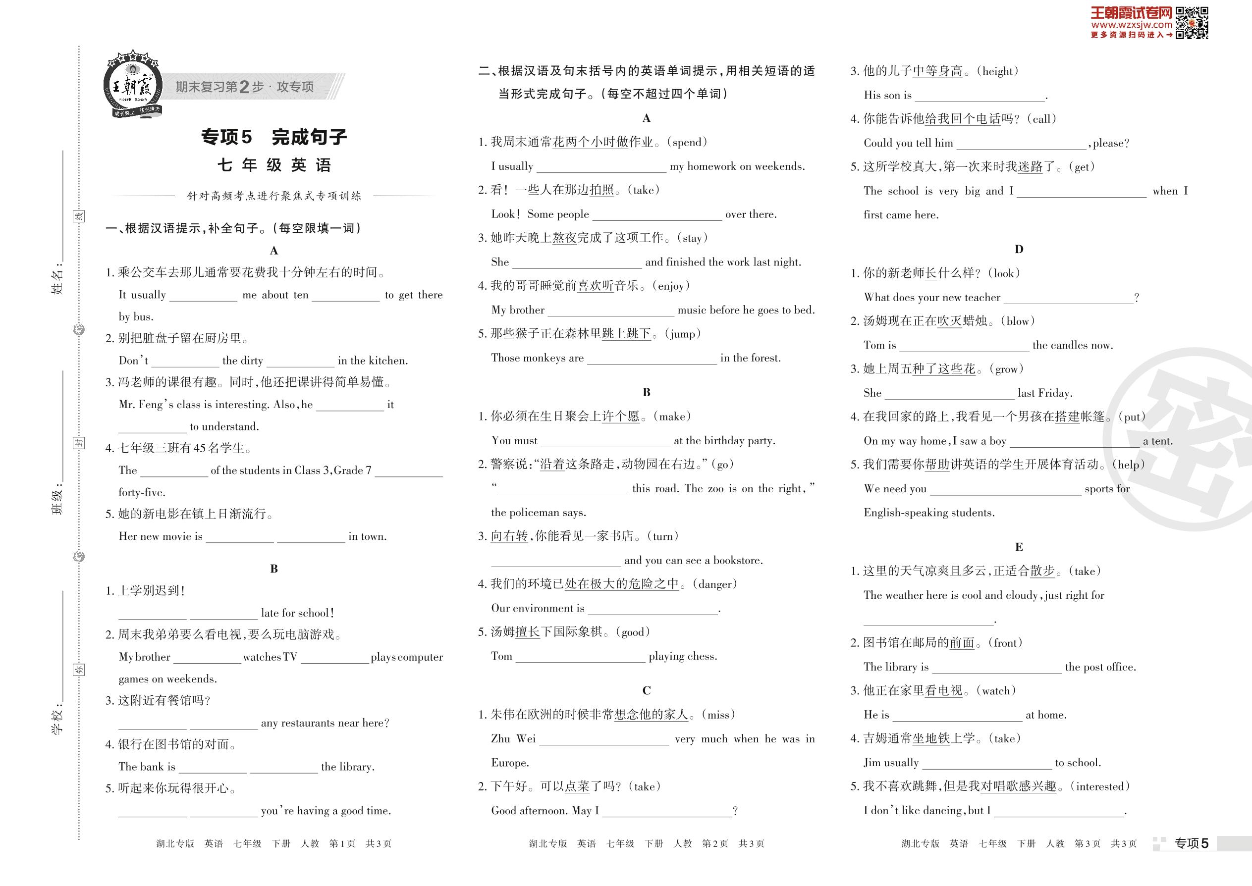 王朝霞期末专项卷——完成句子七年级下册英语(人教版)_R230423173511984【5】
