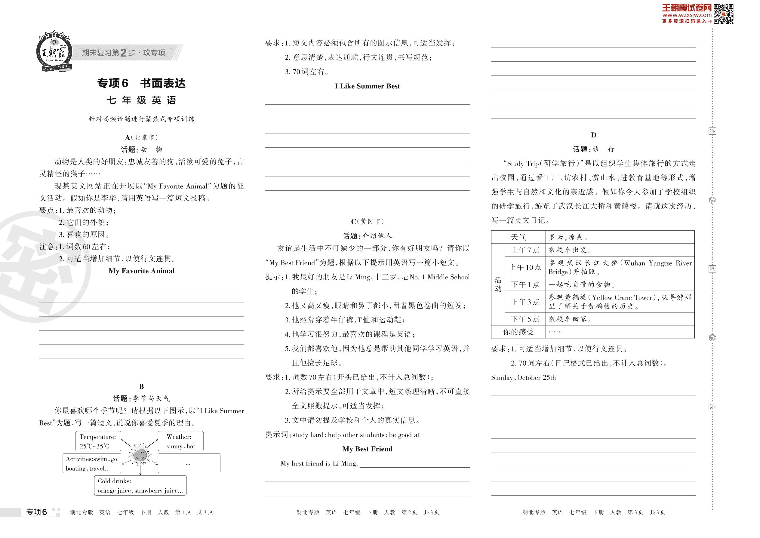 王朝霞期末专项卷——书面表达七年级下册英语(人教版)_R230423173511280【6】