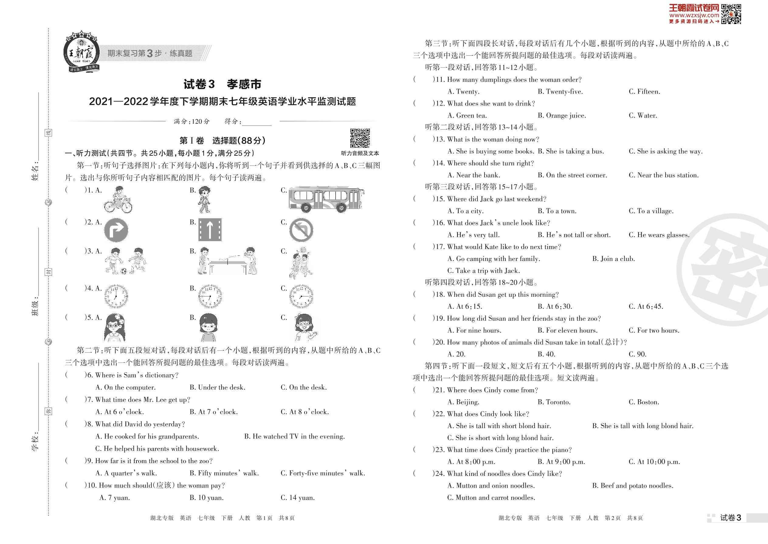 孝感市2021—2022学年度下学期期末七年级英语学业水平监测试题(人教版)【3】