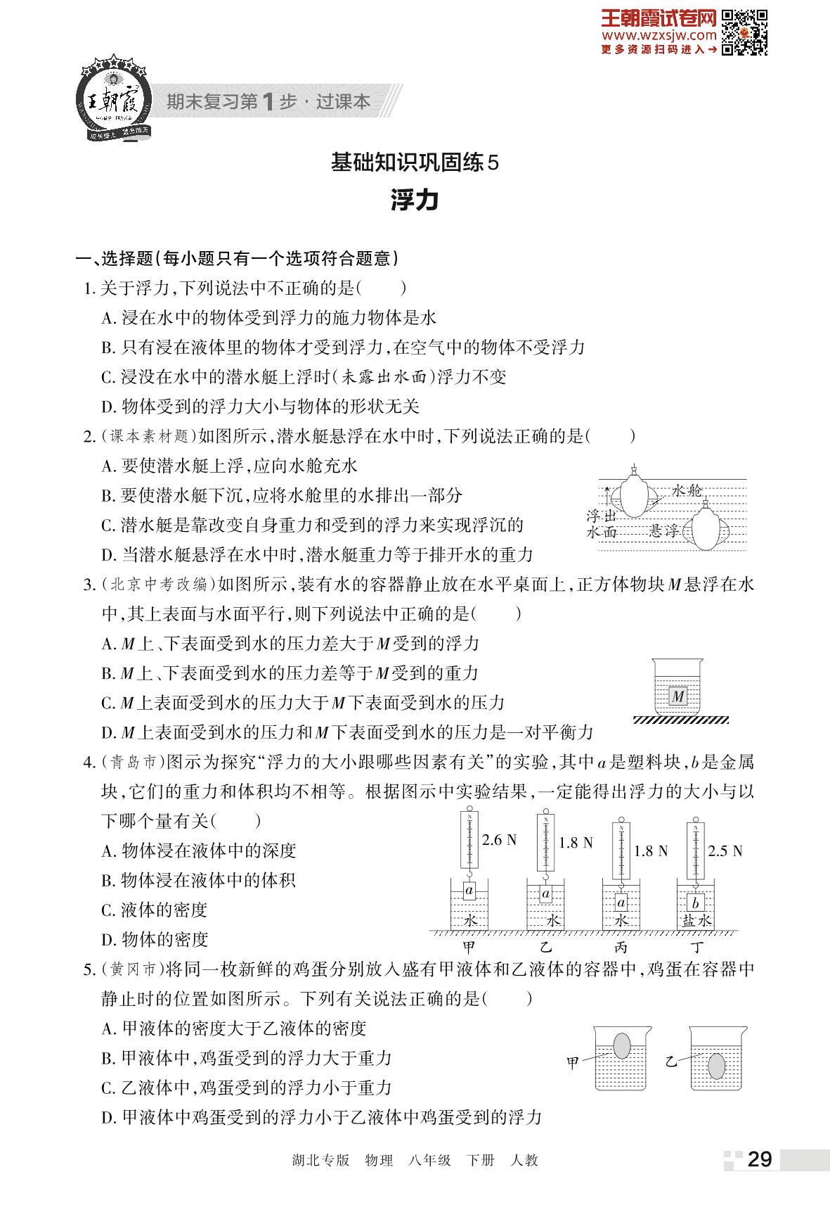 王朝霞期末过课本——基础知识巩固练5 浮力八年级下册物理(人教版)_R230423174047088