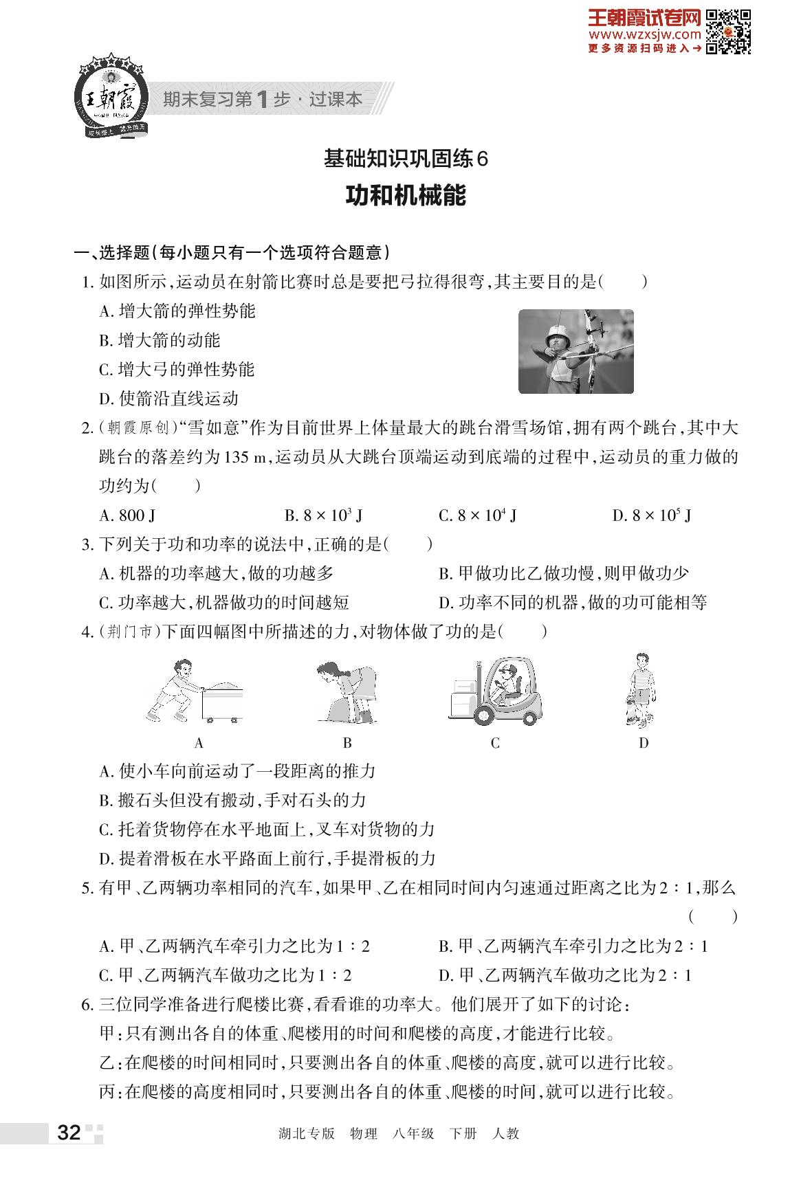王朝霞期末过课本——基础知识巩固练6 功和机械能八年级下册物理(人教版)_R230423174048342