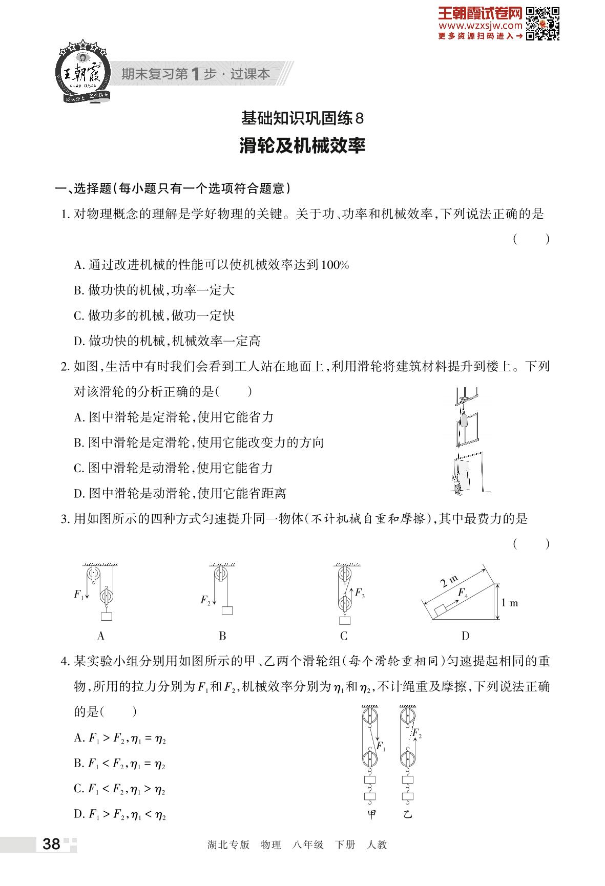 王朝霞期末过课本——基础知识巩固练8 滑轮及机械效率八年级下册物理(人教版)_R230423174048941