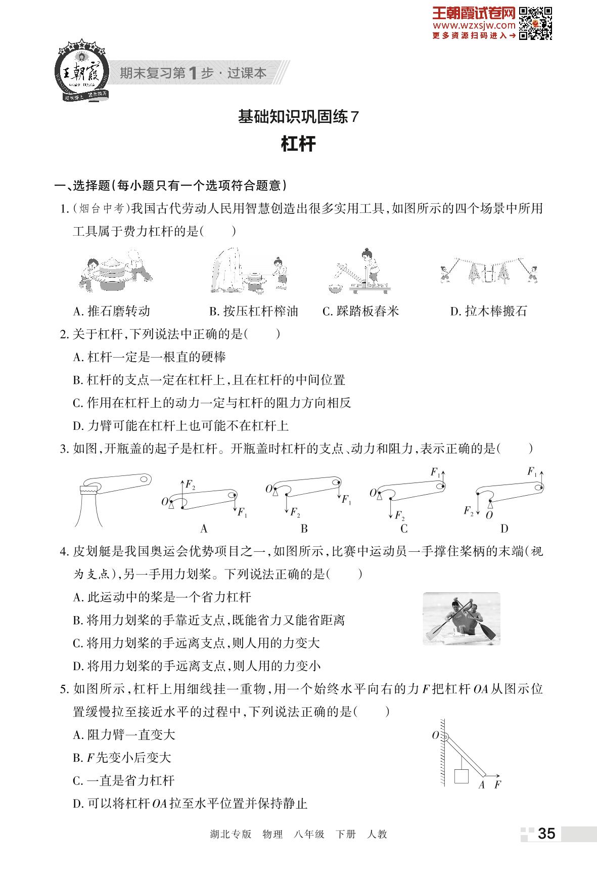 王朝霞期末过课本——基础知识巩固练7 杠杆八年级下册物理(人教版)_R230423174049038
