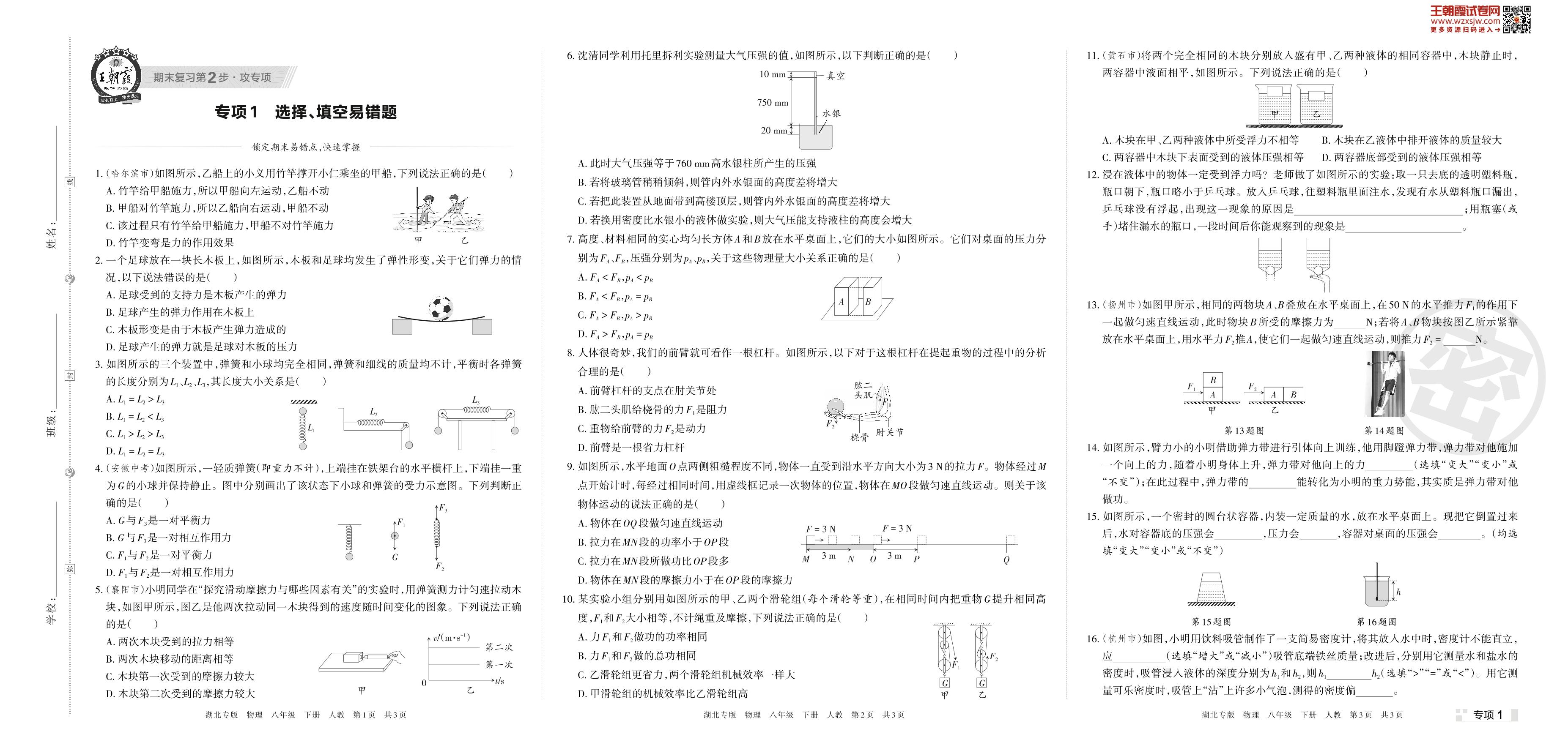 王朝霞期末专项卷——选择、填空易错题八年级下册物理(人教版)_R230423174049608【1】