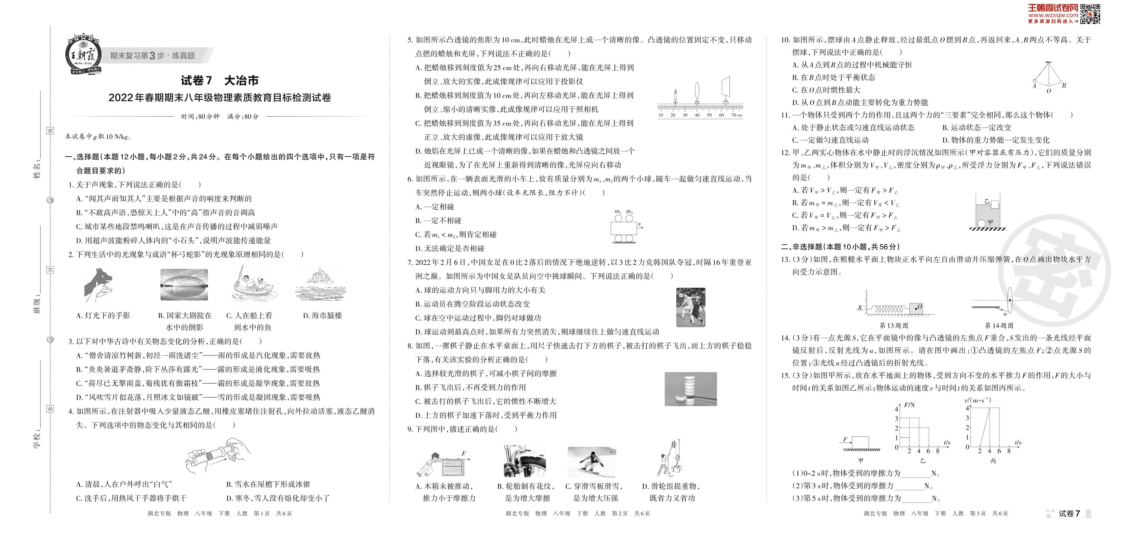 大冶市2022年春期期末八年级物理素质教育目标检测试卷(人教版)【7】