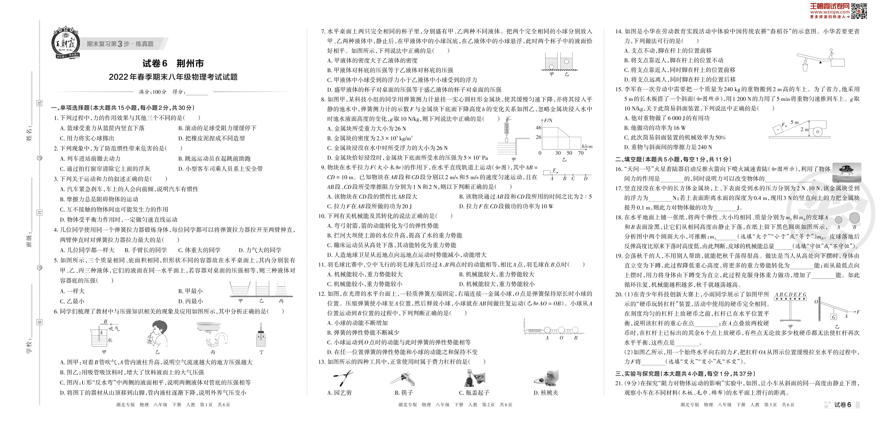 八年级物理人教版下册期末卷