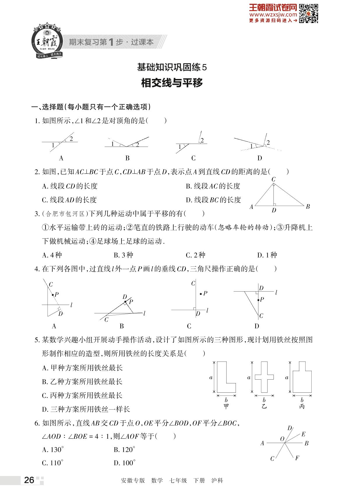 王朝霞期末过课本——基础知识巩固练5 相交线与平移七年级下册数学(沪科版)_R230424095048480
