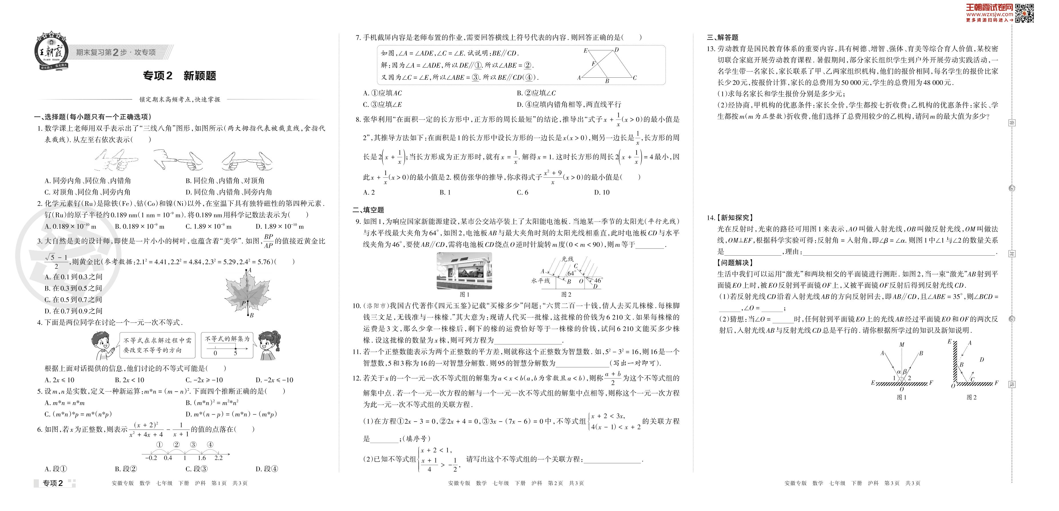 王朝霞期末专项卷——新颖题七年级下册数学(沪科版)【2】