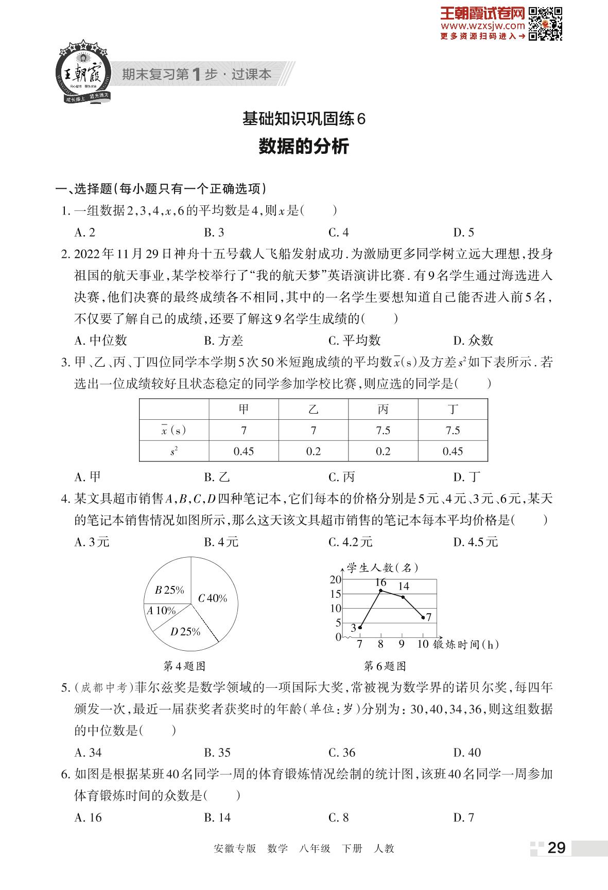 王朝霞期末过课本——基础知识巩固练6 数据的分析八年级下册数学(人教版)_R230424101547537