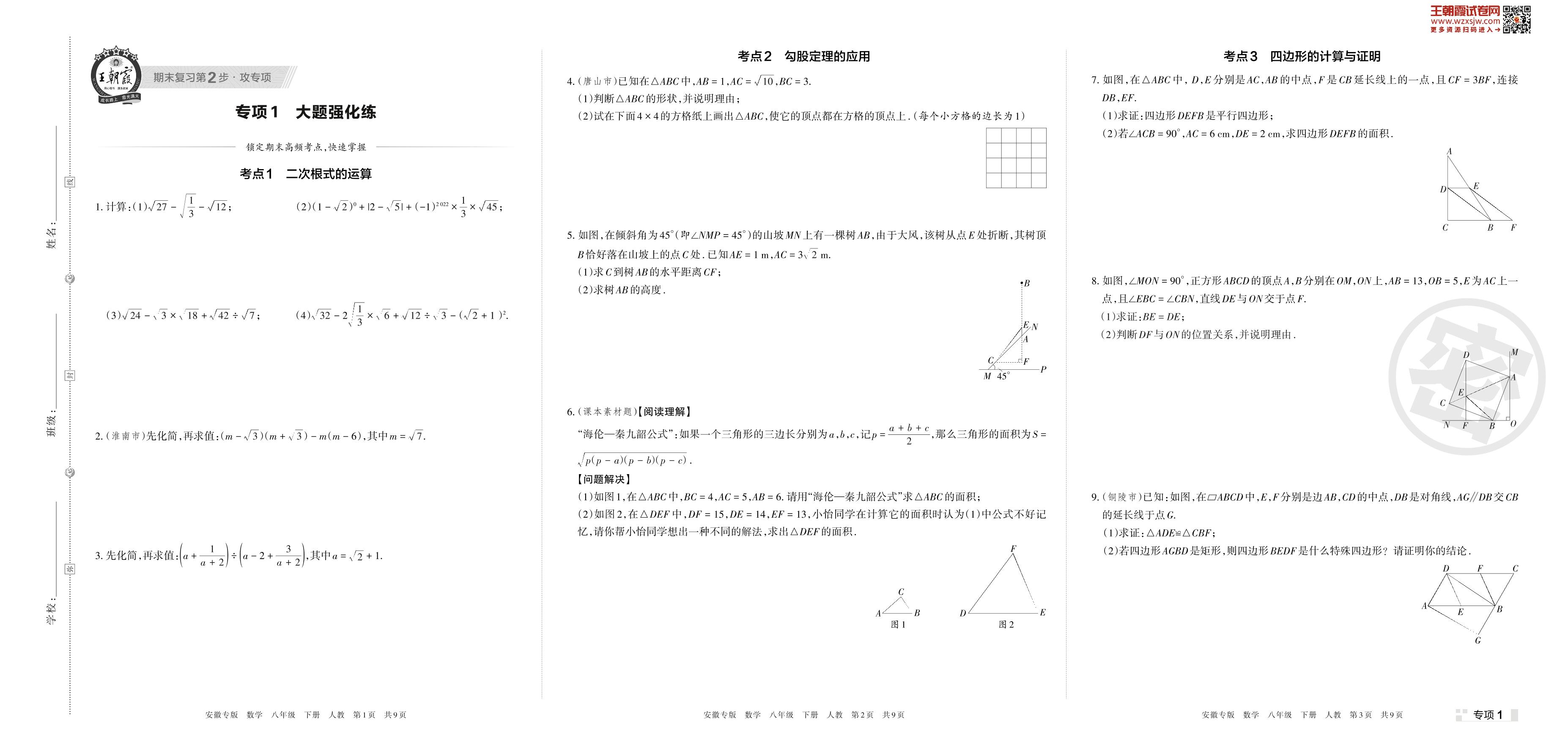 王朝霞期末专项卷——大题强化练八年级下册数学(人教版)_R230424101548993【1】